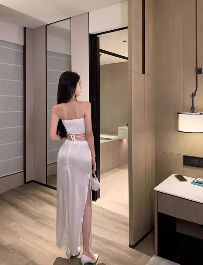 Modern 2-Piece Set Sheath Maxi Dresses Chic High-Slit Cutout Strapless Long Dress AP3555