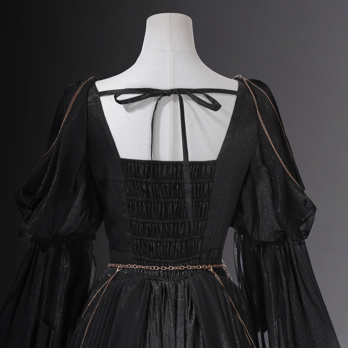 Adorable Sparkly A-Line Square Neck Evening Dresses Chain Sequins Black Prom Dress AP3222