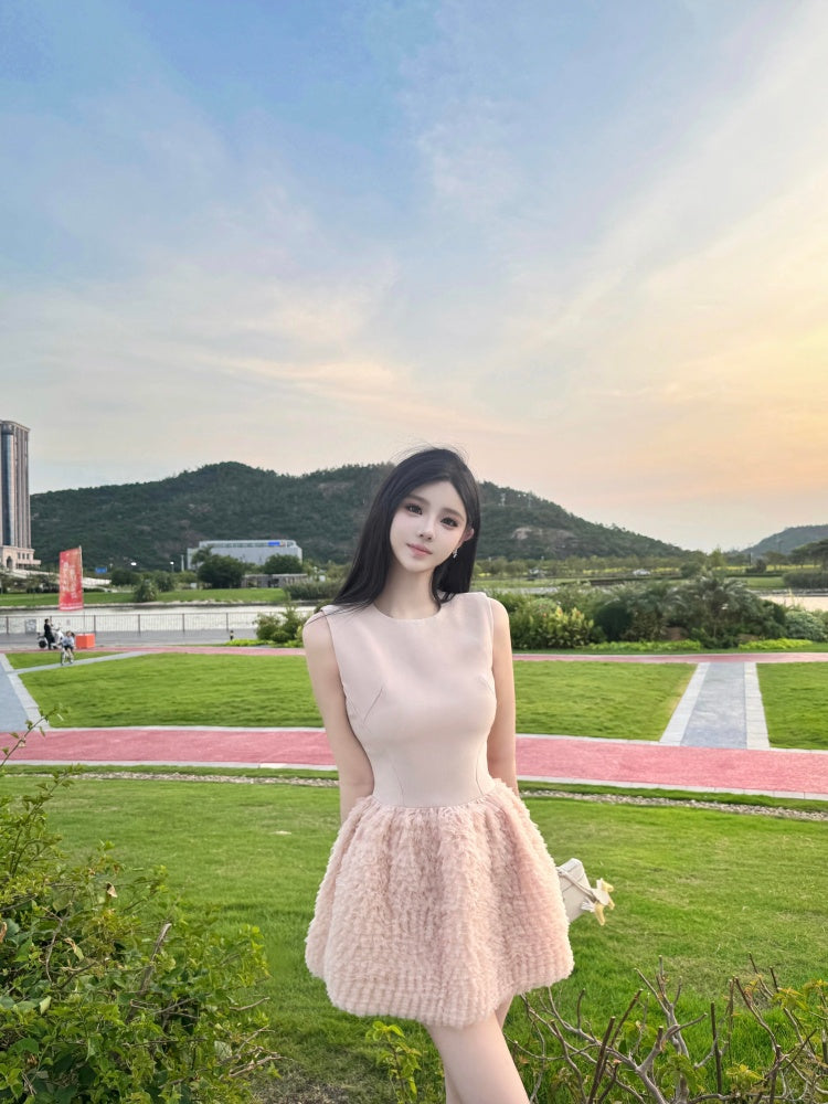 Amazing A-Line Jewel Neck Mini Skirt Cute Ruffles Hem Sleeveless Short Dress AP4014