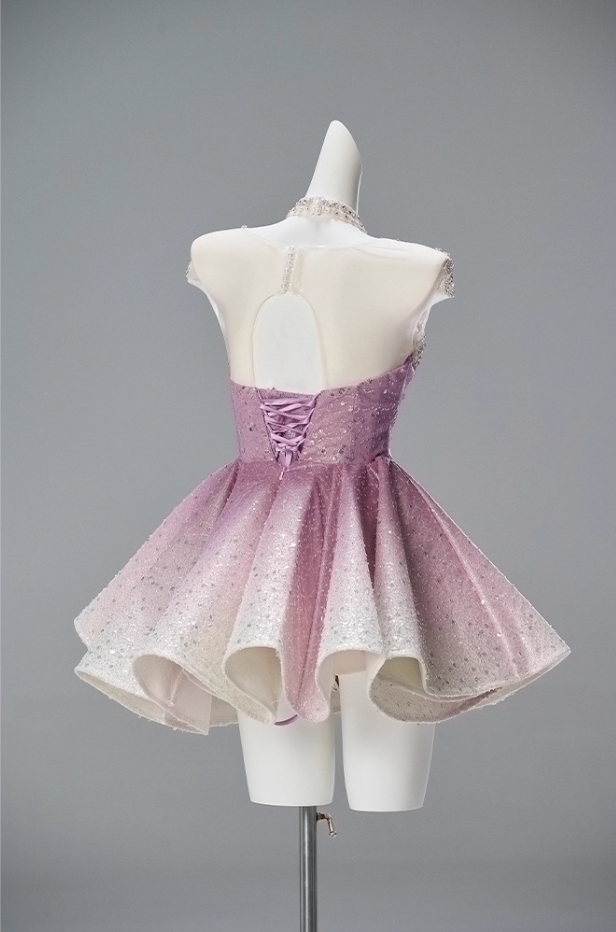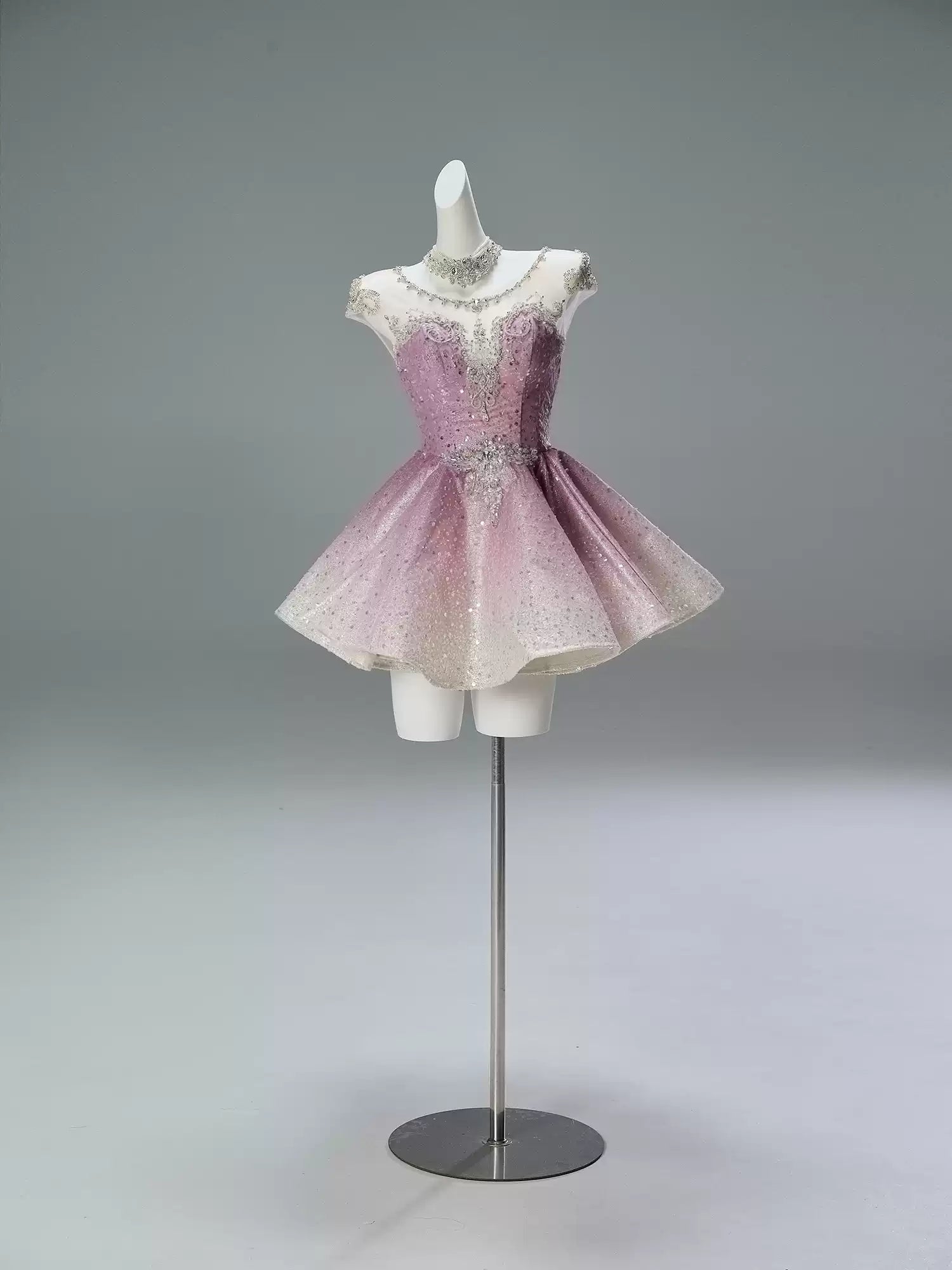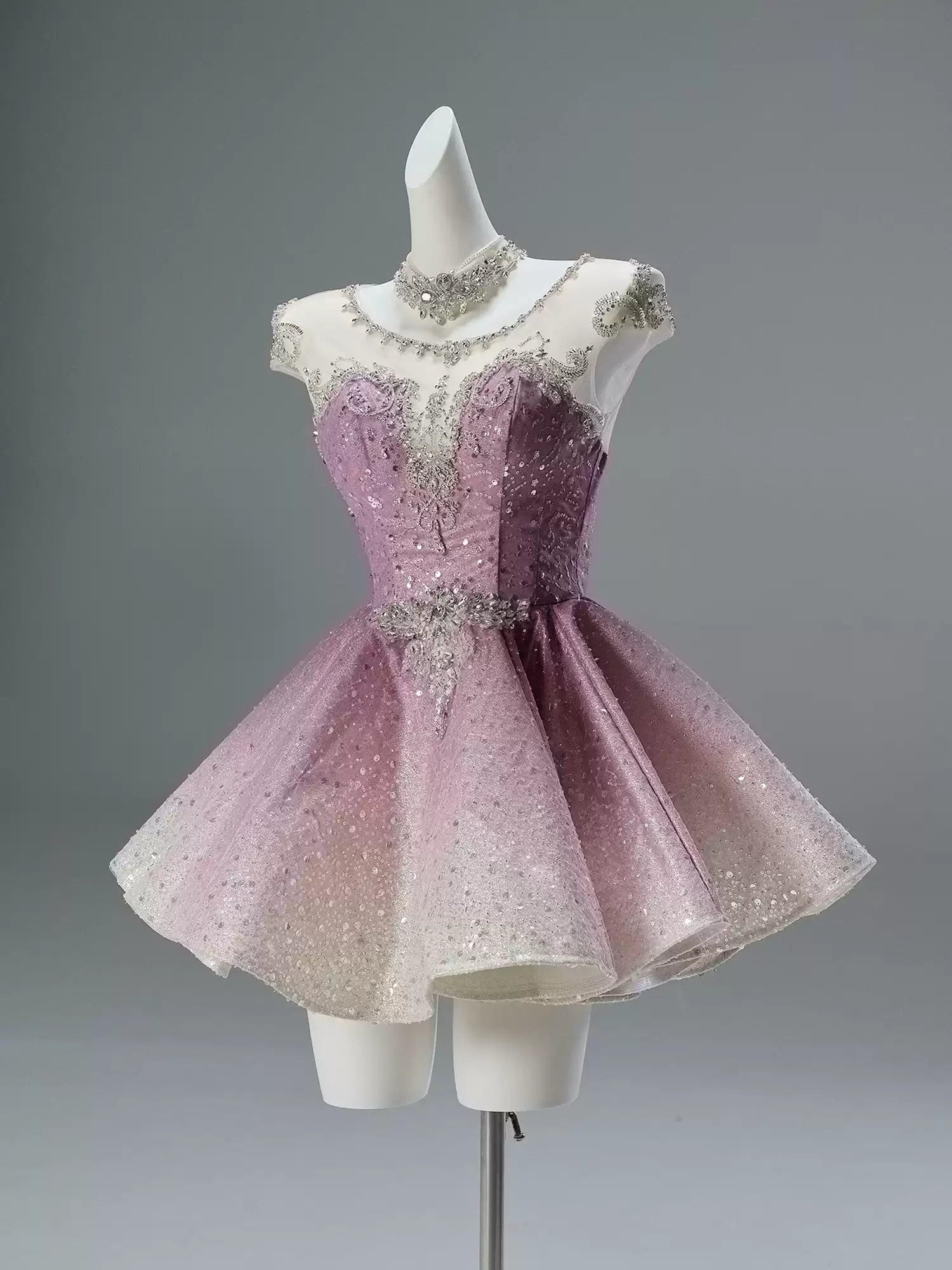 Charming A-Line Jewel Neck Short Sleeve Birthday Gowns Delicate Crystals Sequins Beading Splicing Tulle Homecoming Dress AP3842