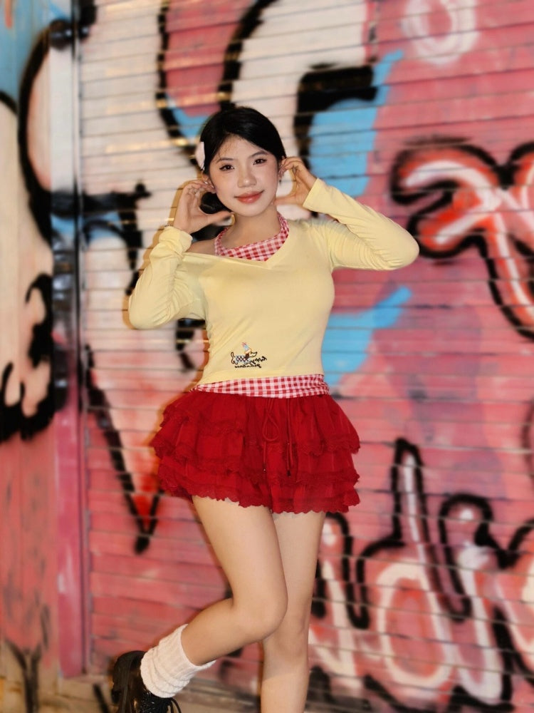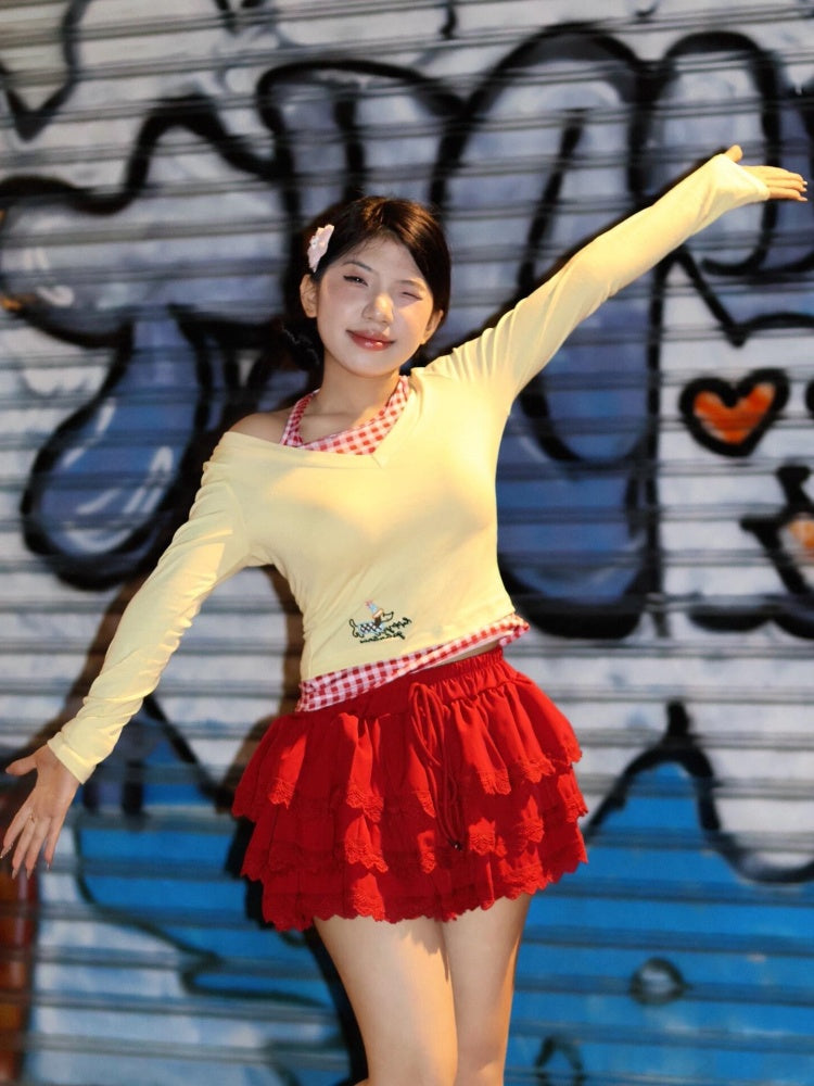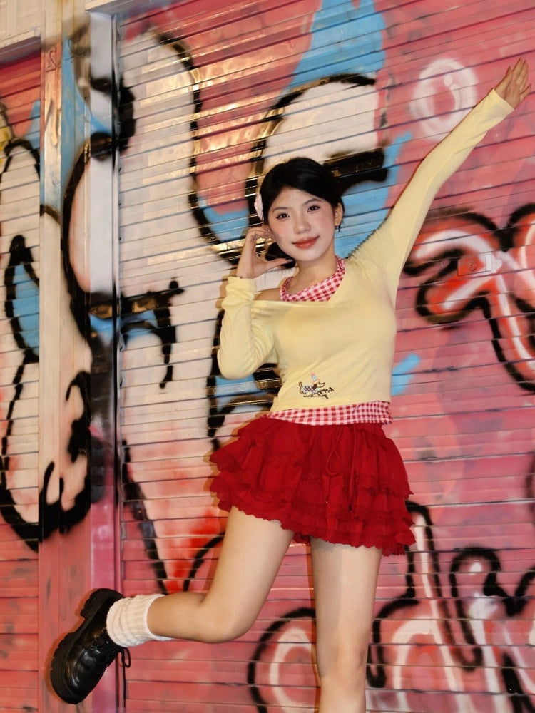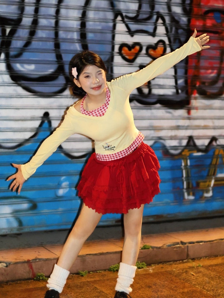 Hottie A-Line 2-Piece Set Long Sleeve Mini Skirt Charming Plaid Splicing Tiered Halter Short Dress AP4066