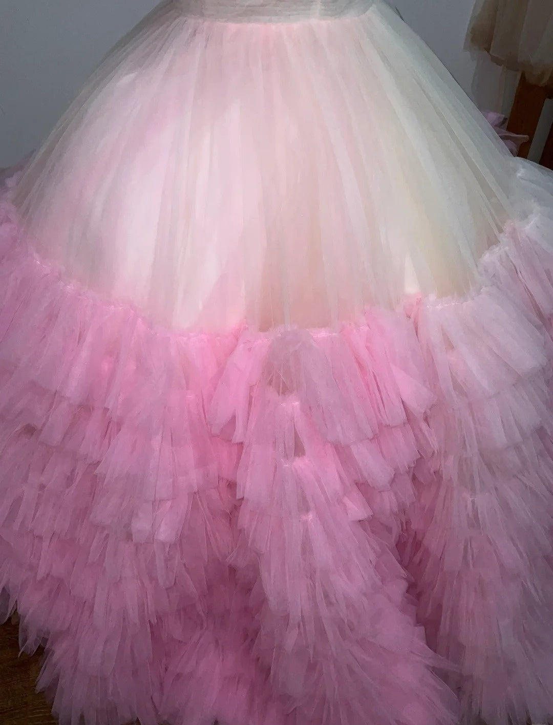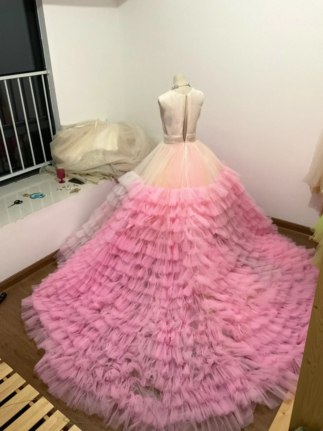 French Style Jewel Neck A-Line Formal Gowns Tiered Tulle Prom Dress AP3111