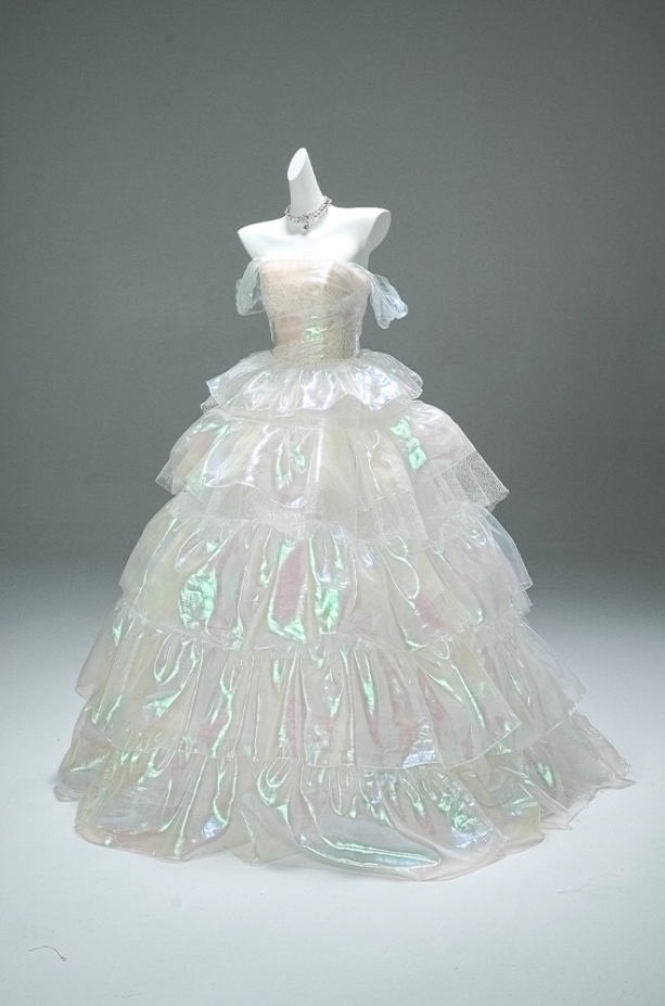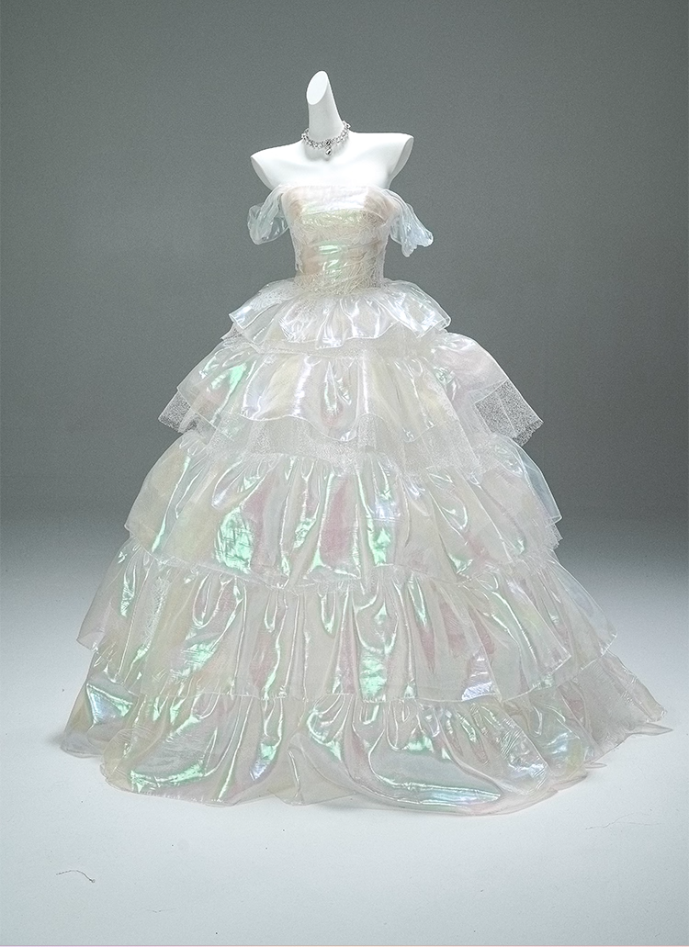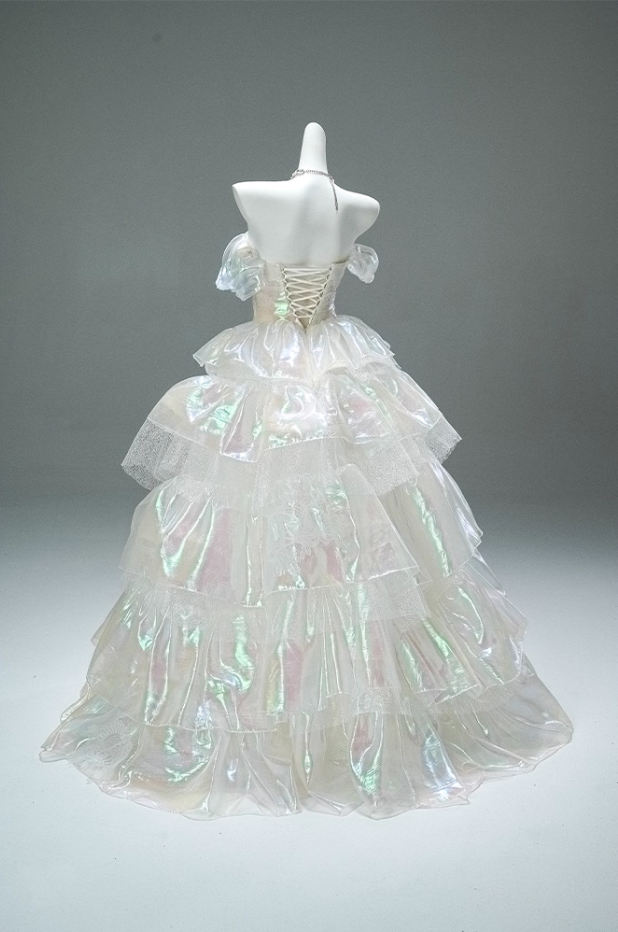 Appealing A-Line Off-Shoulder Tiered Evening Gowns Lustrous Appliques Prom Dress AP3875