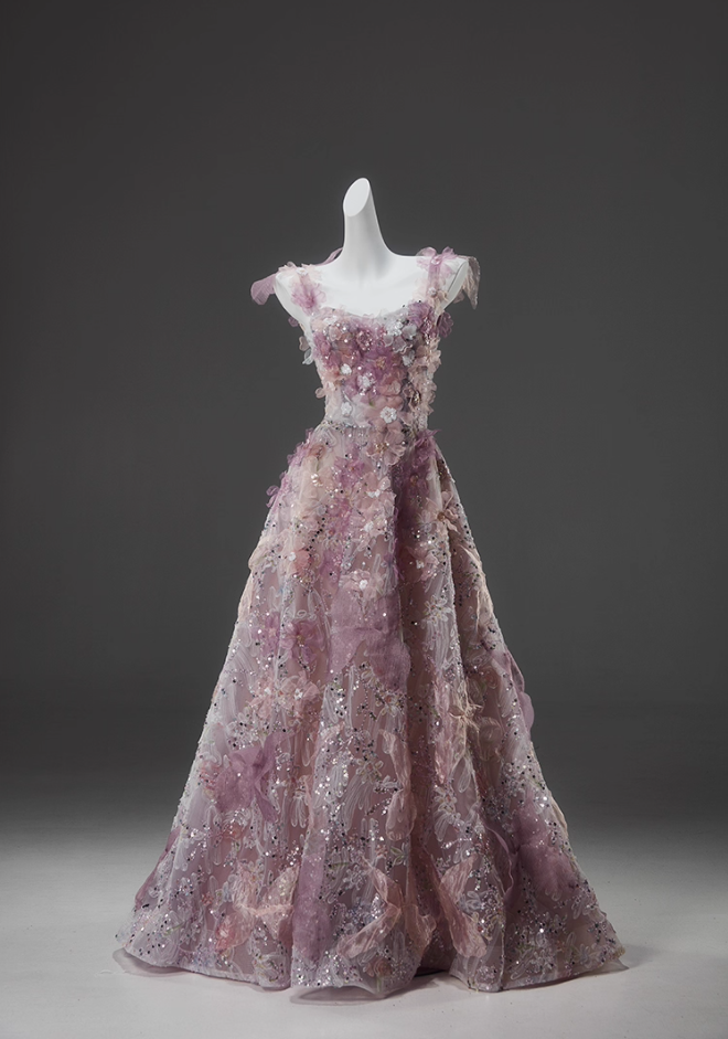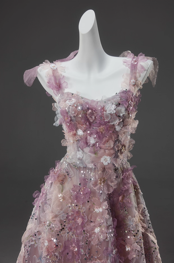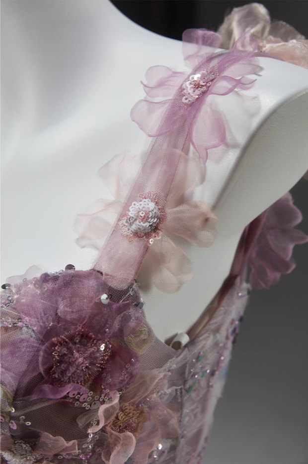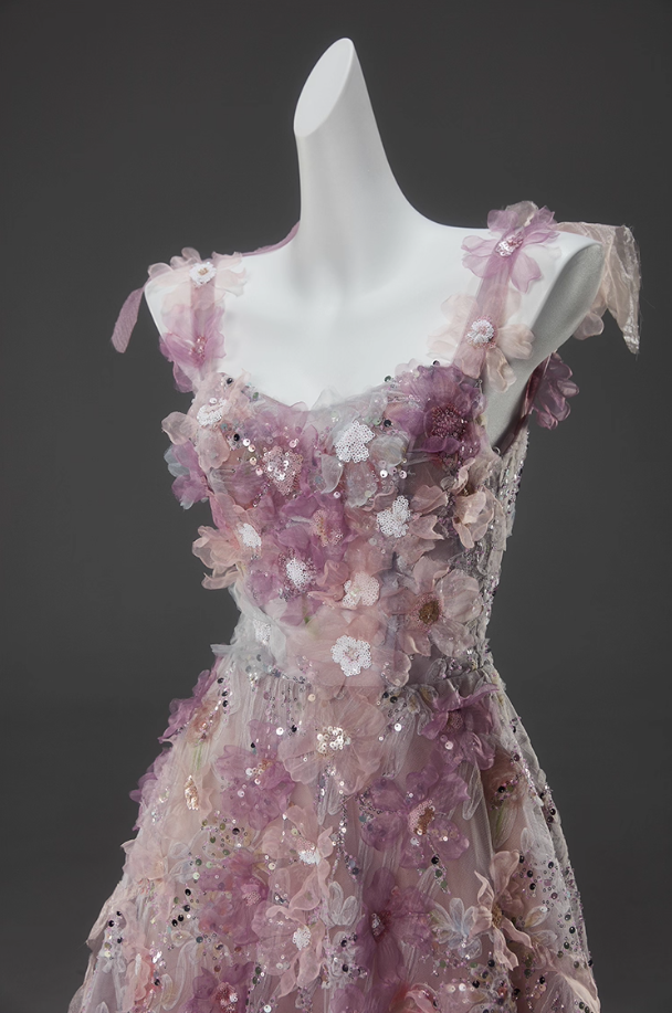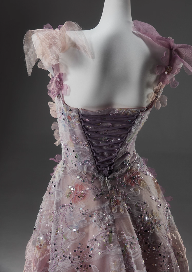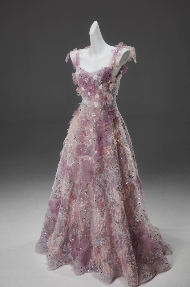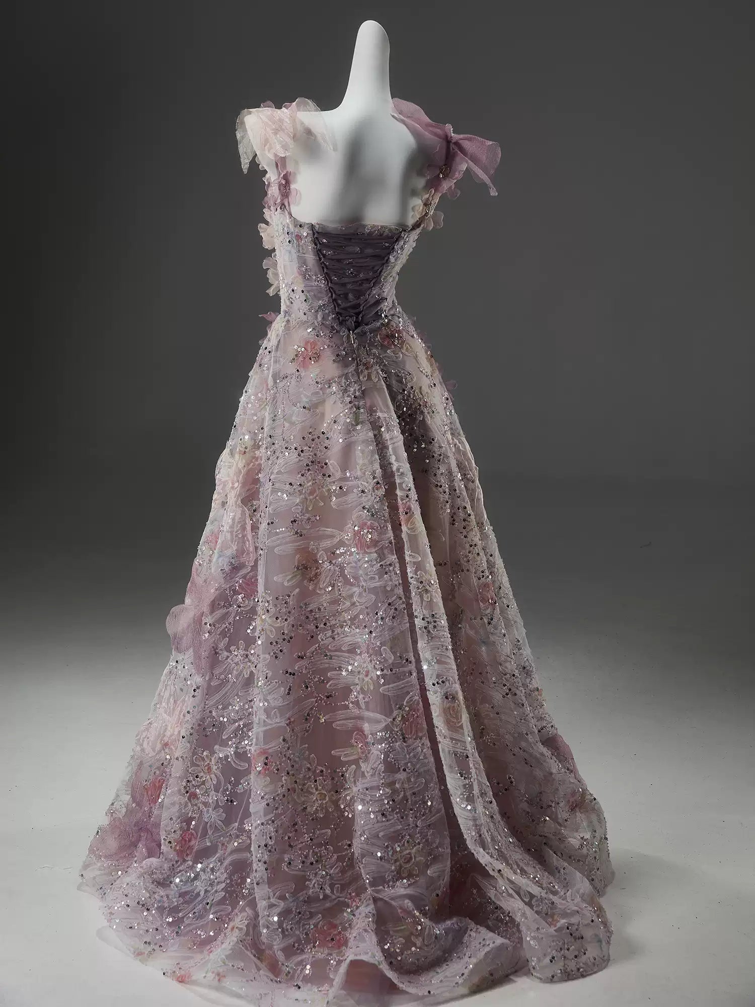 Stylish A-Line Spaghetti Strap Evening Dresses Sweet 3D Appliques Sequins Prom Dress AP3915