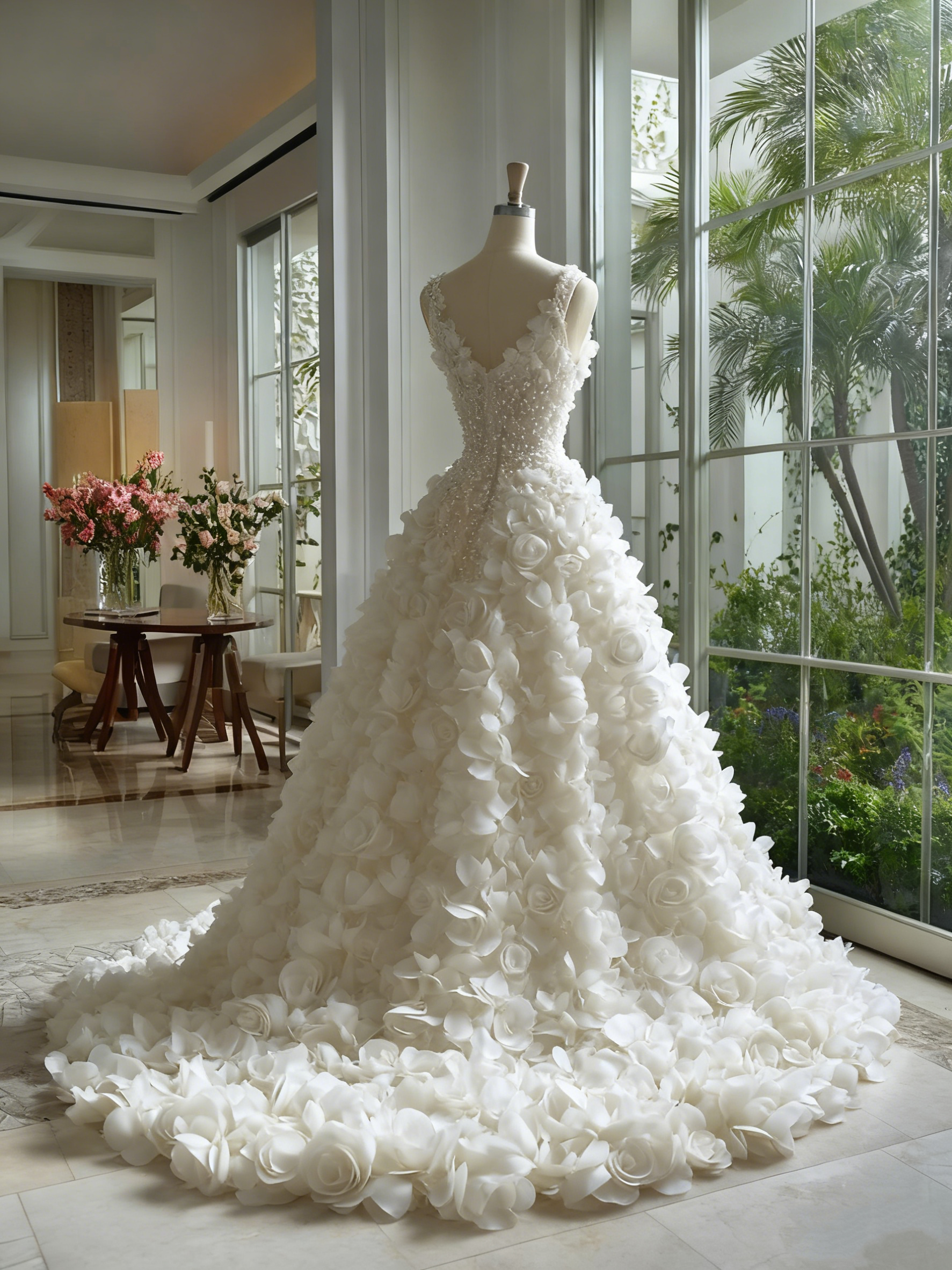 Luxurious A-Line Spaghetti Strap Evening Dresses Handmade Flowers Beading Prom Dress AP4226