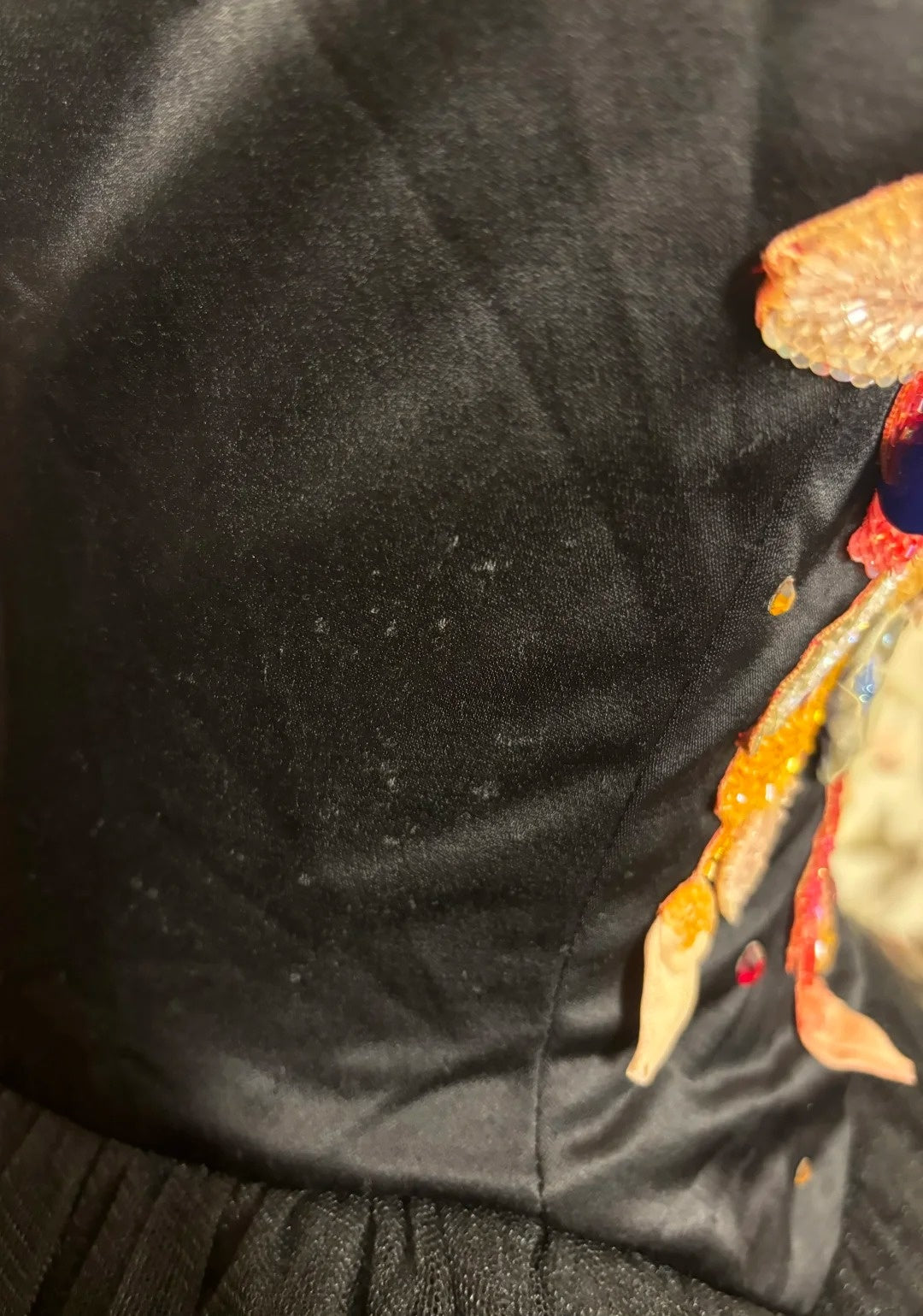 Attractive A-Line Spaghetti Strap Prom Dress Sequins Handmade Flowers Tulle Black Evening Gowns AP2808