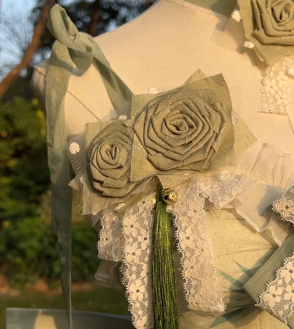 Cute A-Line Spaghetti Straps Birthday Dress Handmade Flowers Lace Bows Tiered Homecoming Dress AP3256