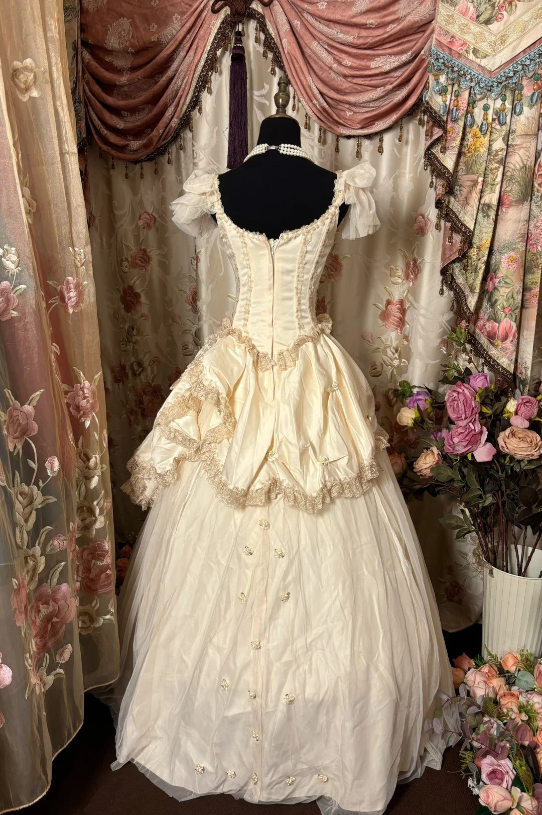Trendy A-Line Square Neck Prom Dress Appliques Lace Tulle Short Sleeve Evening Dresses AP2863