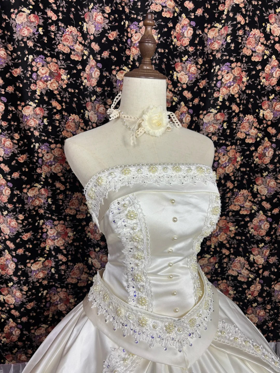 Glam A-Line Strapless Bridal Gowns Beaded Sequins Satin Wedding Dress AP2543