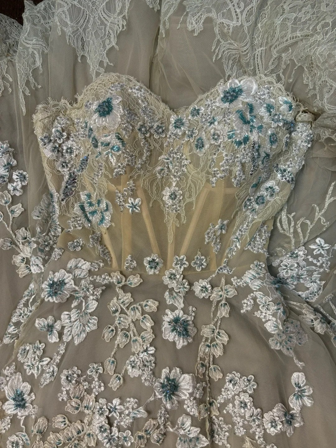 Glam A-Line Strapless Engagement Gowns Beading Appliques Sequins Wedding Dress AP2729