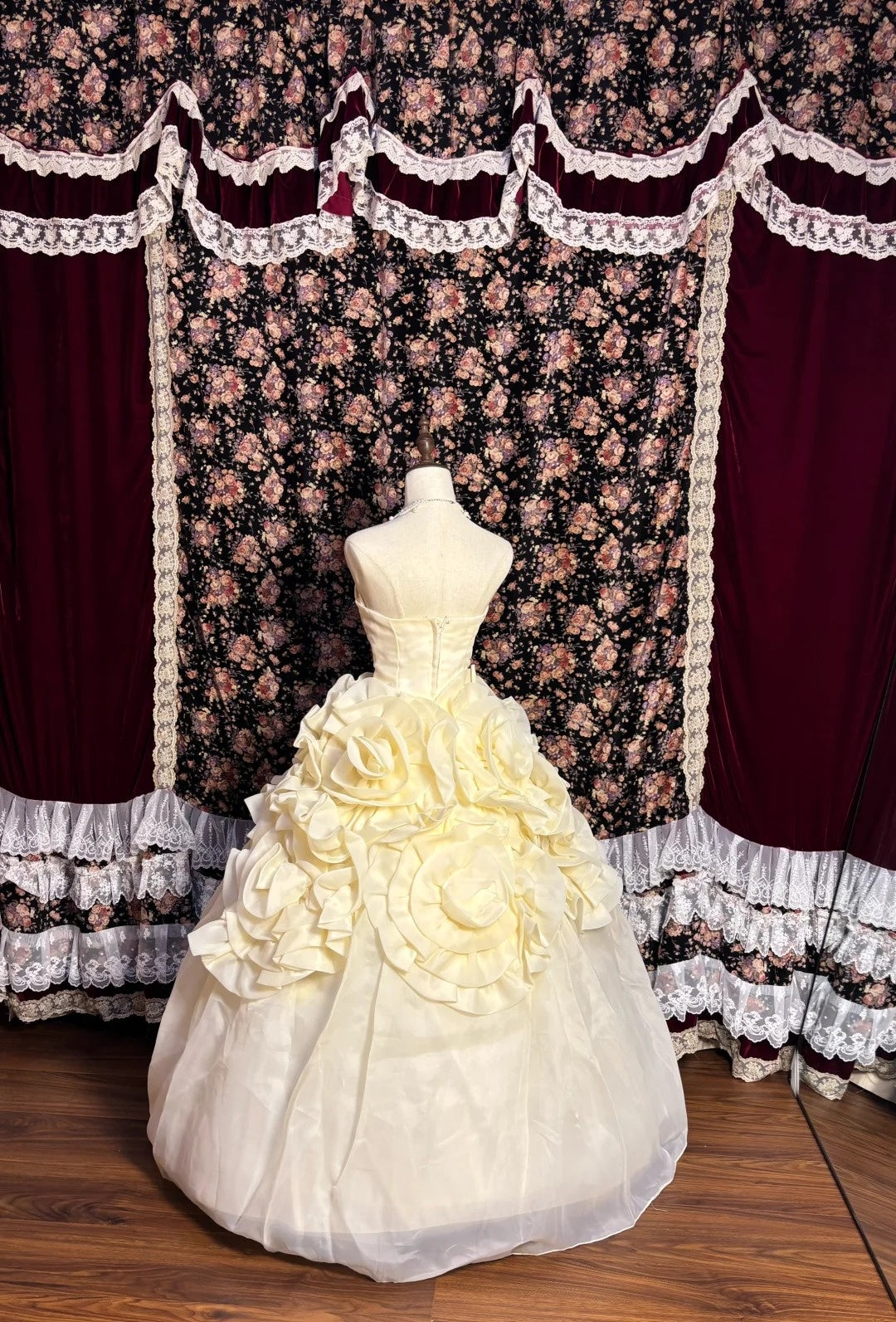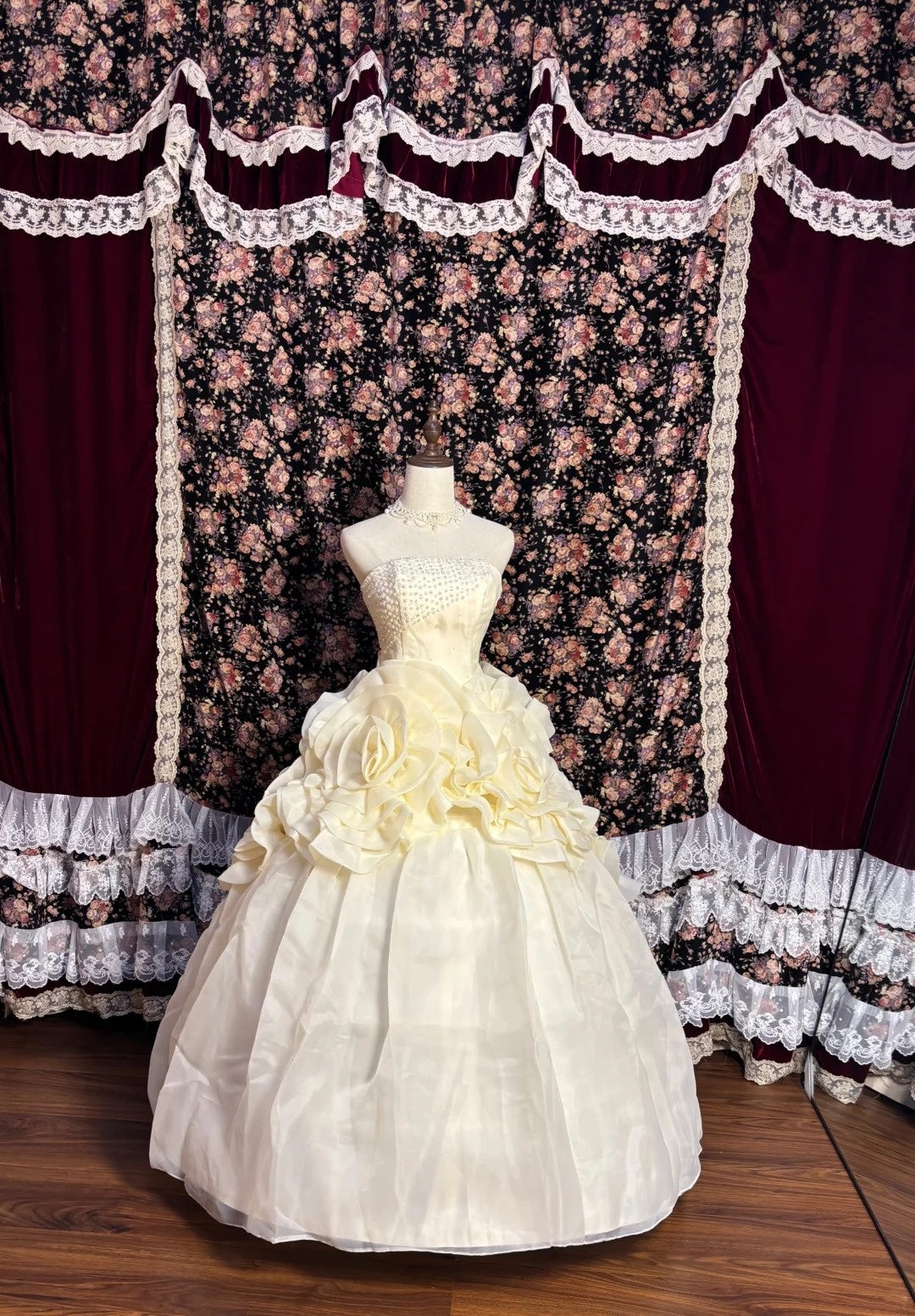 Charming A-Line Strapless Evening Gowns Handmade Flower Beaded Prom Dress AP2587