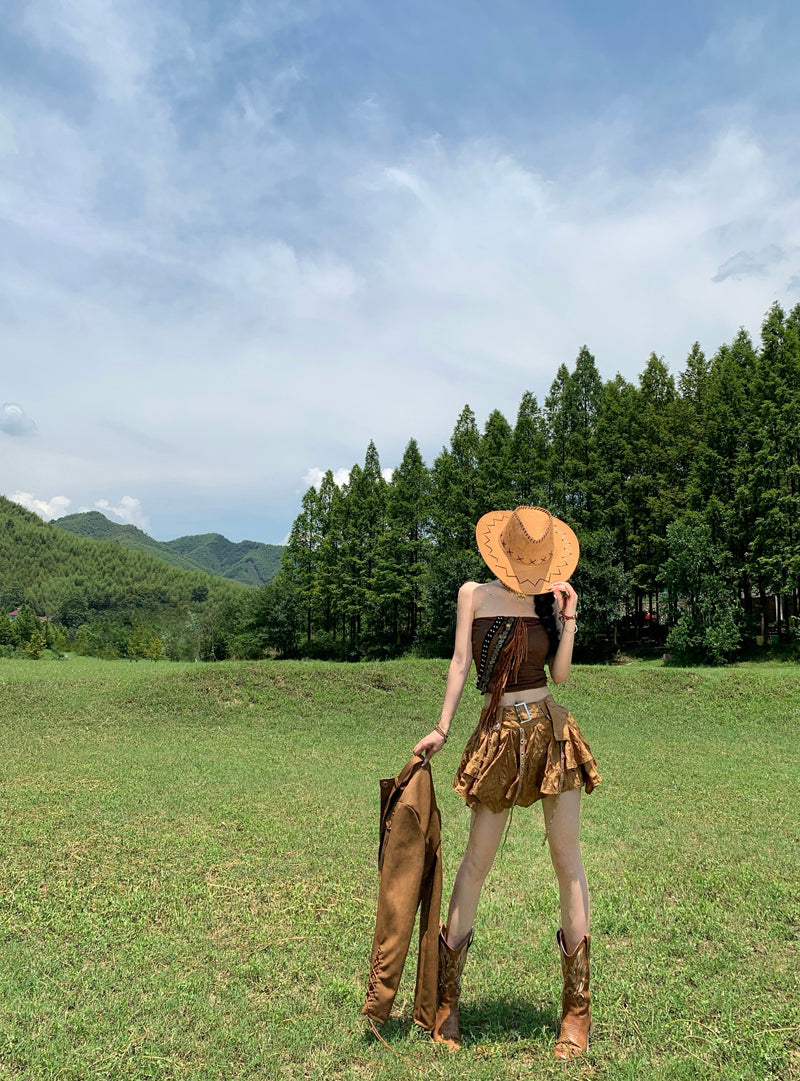 Vintage A-Line Strapless 2-Piece Set Mini Skirt Gen Z Style Tassel Tube Top Asymmetric Hem Short Dress AP3316