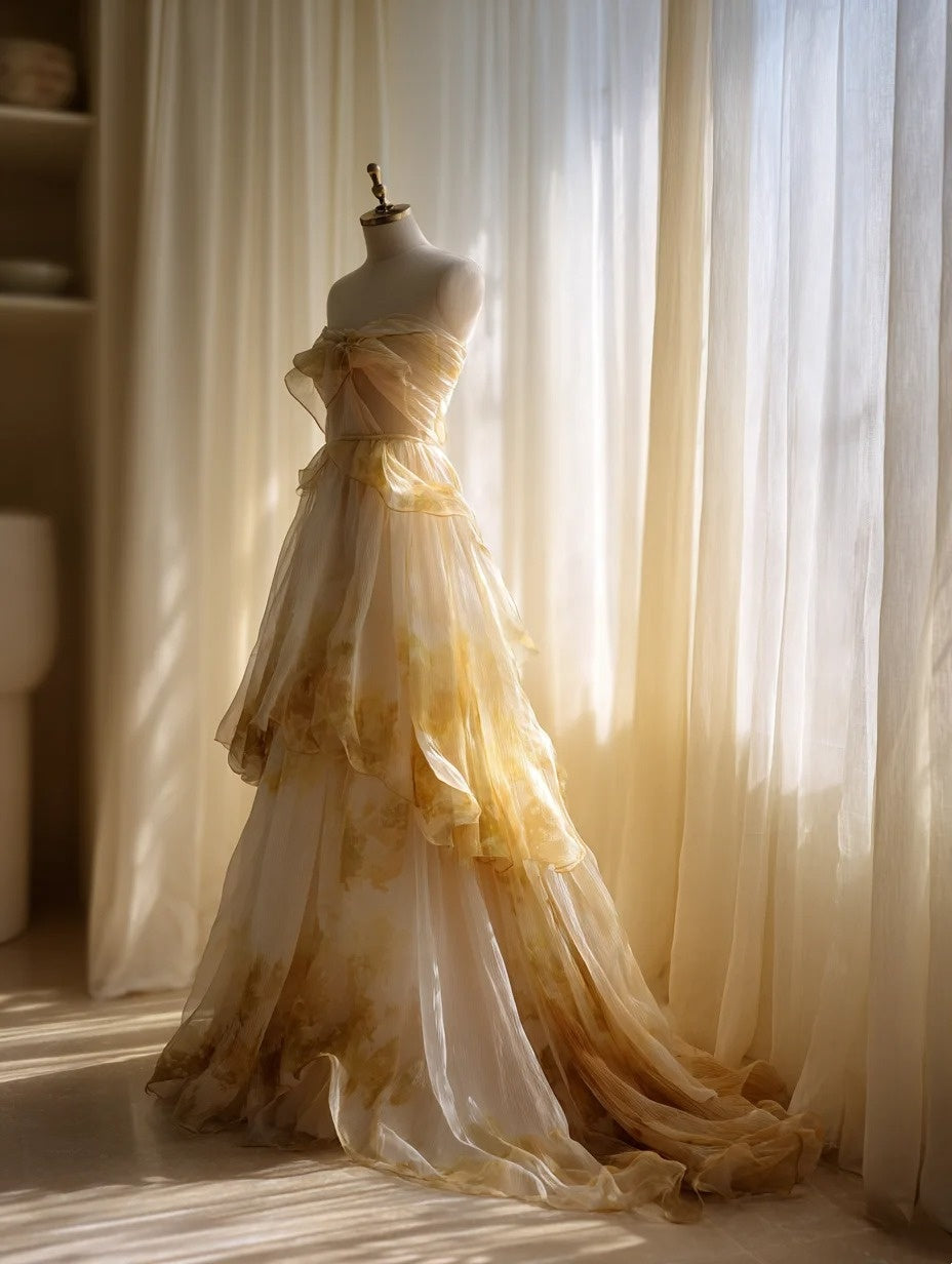Fitted A-Line Strapless Sweet 16th Dresses Floral Print Tulle Tiered Prom Dress AP4260
