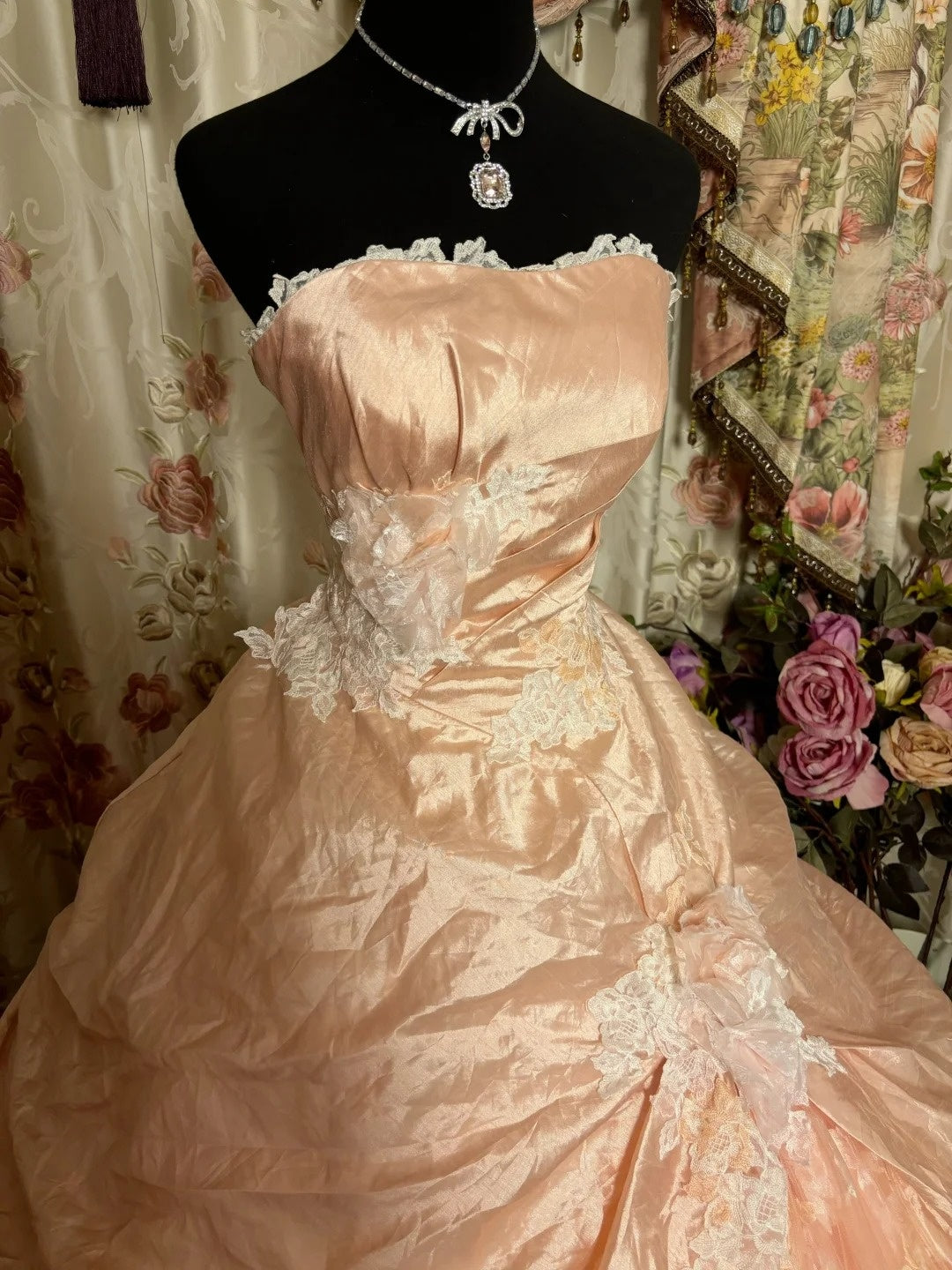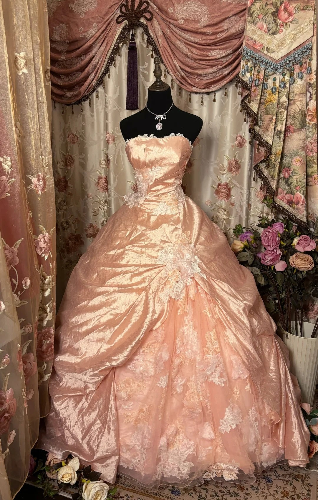 Charming A-Line Strapless Sweet 16th Gowns Lace Handmade Flower Tulle Prom Dress AP2902