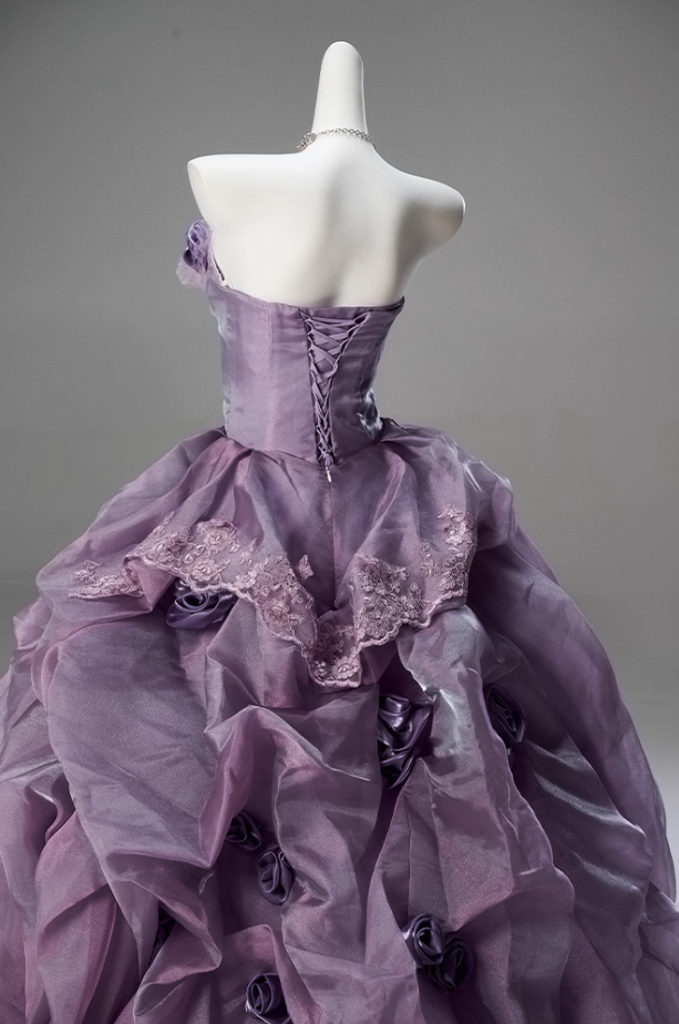 Maximalism A-Line Strapless Sweet 16th Gowns Appliques Sequins Handmade Flowers Beads Lace Tulle Prom Dress AP3841
