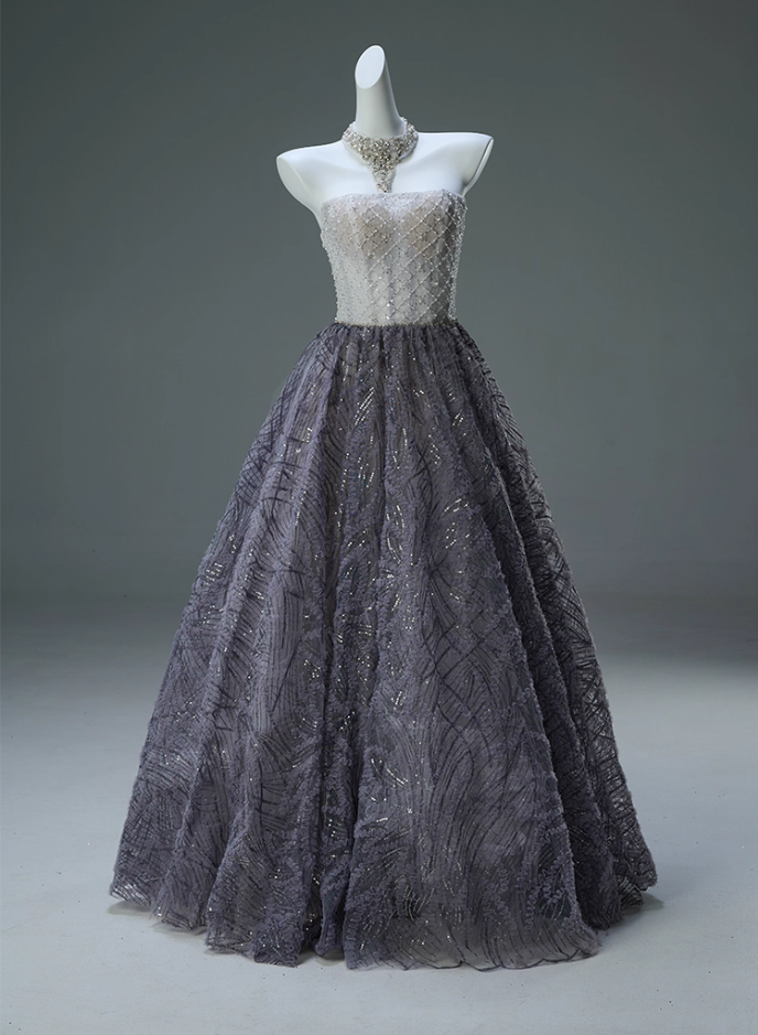 Novelty A-Line Strapless Sweet 16th Gowns Exquisite Beads Sequins Tulle Prom Dress AP3901
