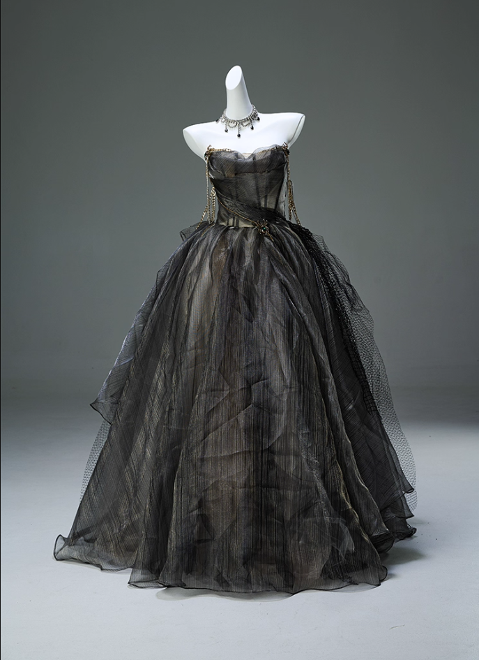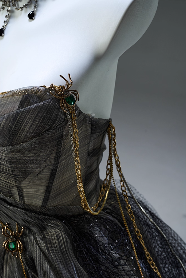 Unique Off-Shoulder A-Line Sweet 16th Gowns Gothic-Style Chain Crystals Tulle Prom Dress AP3902