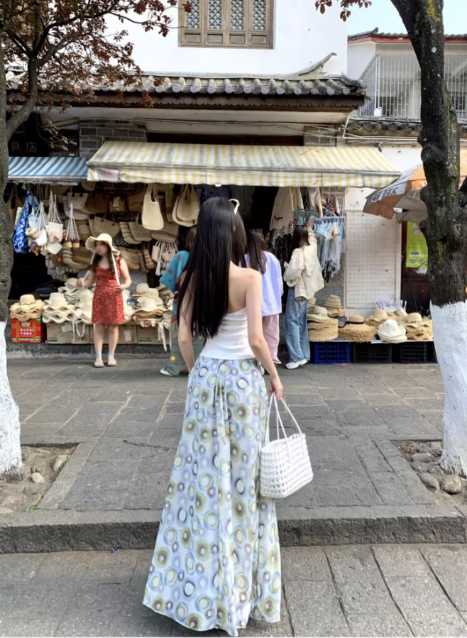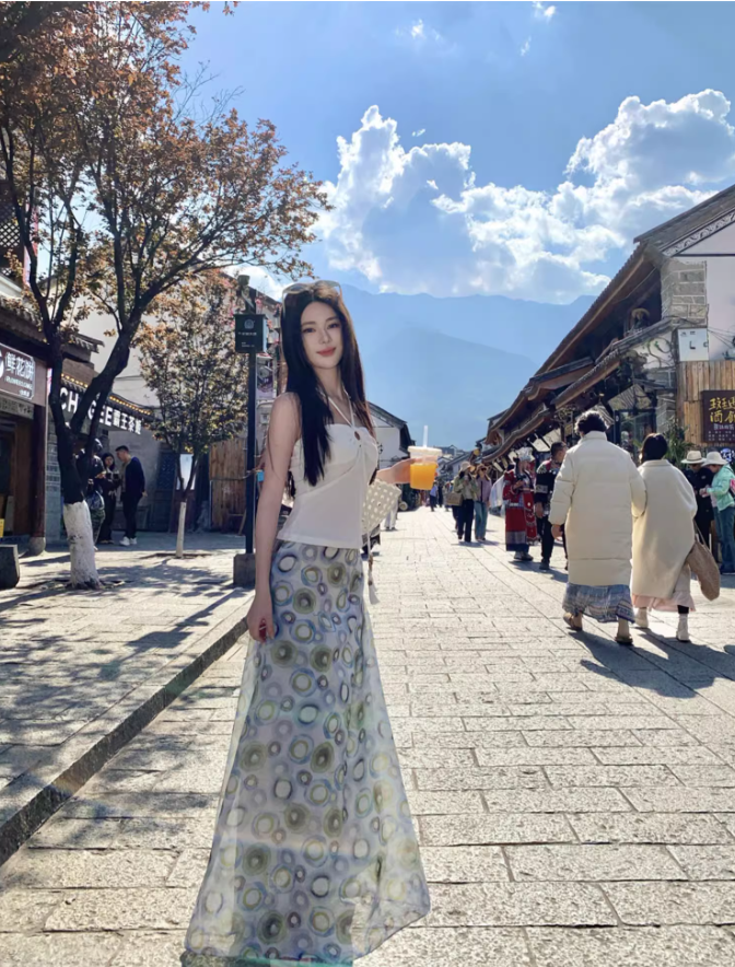 Bohemian Circle-Print Two-Piece Set Maxi Dress Chic Market Hangouts Halter Crop Top Long Dress AP1255