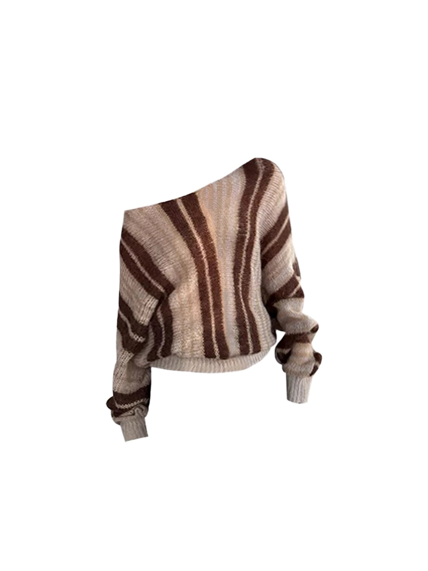 French Style Asymmetric Neck Sheath Midi Dress Vintage Long Sleeve Knitted Sweater 2-Piece Set Long Dress AP4180