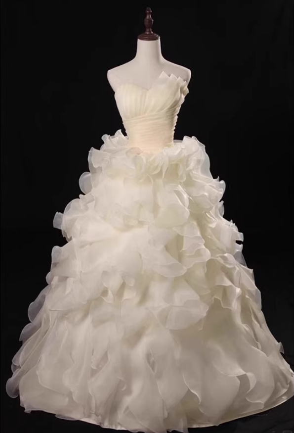 Asymmetrical Neck Tulle Layered Ethereal Maxi Dress Cascade Ruffles Strapless Prom Dress AP0724