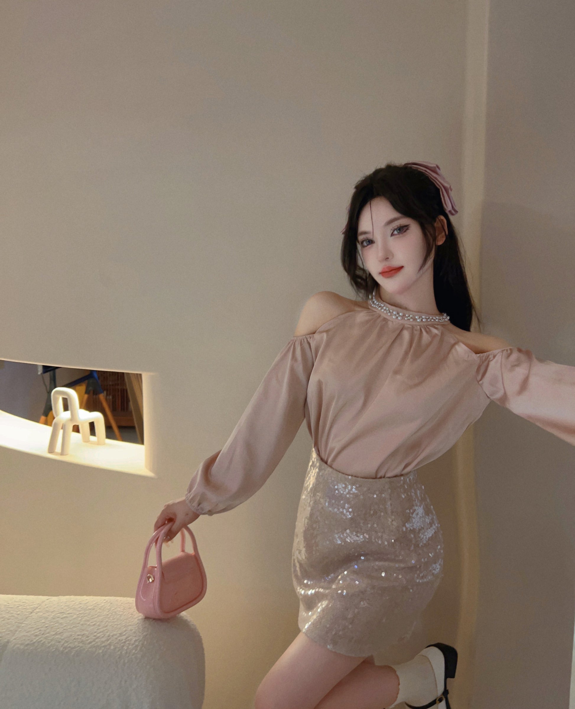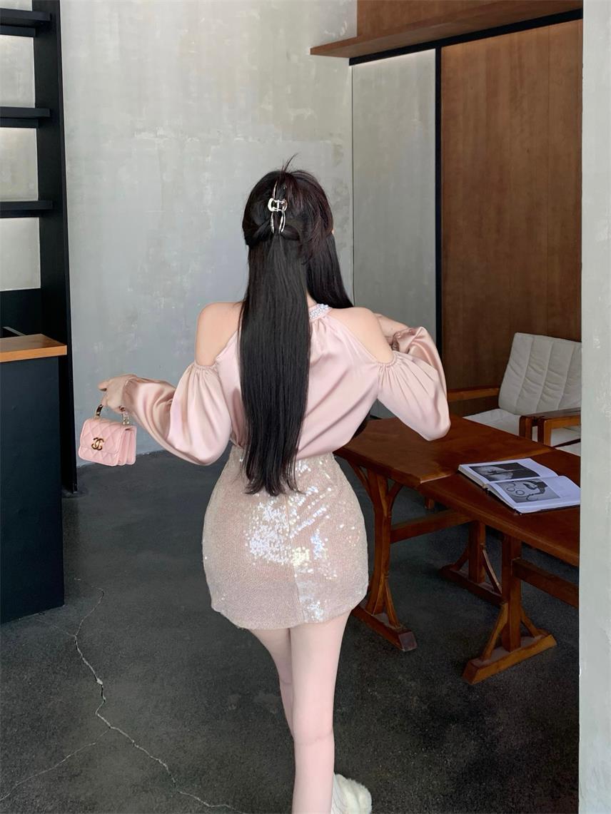 Stunning Long Sleeve Jewel Neck Bodycon Mini Dress Sexy 2-Piece Set Sequins Crystals Short Dress AP3628