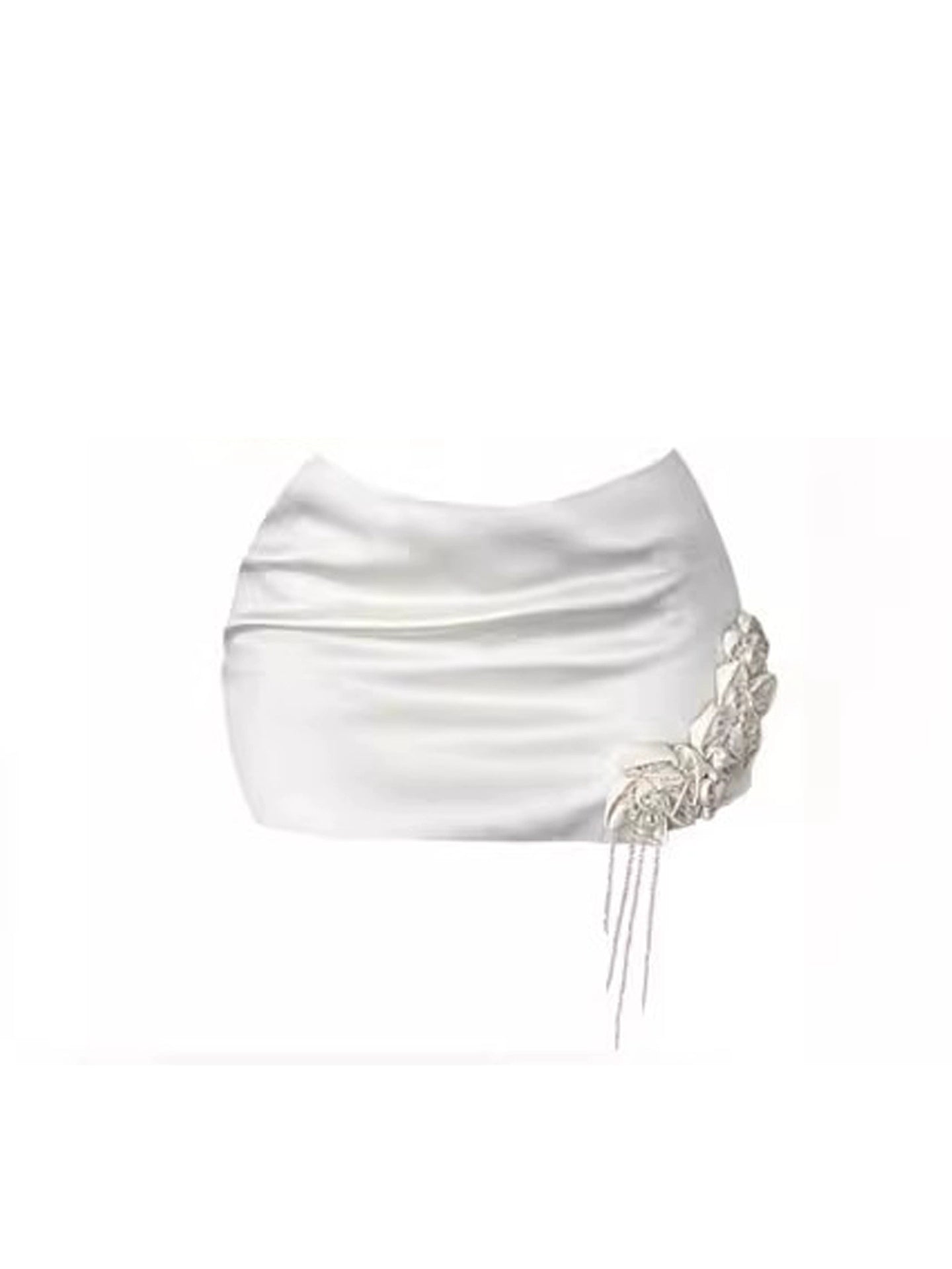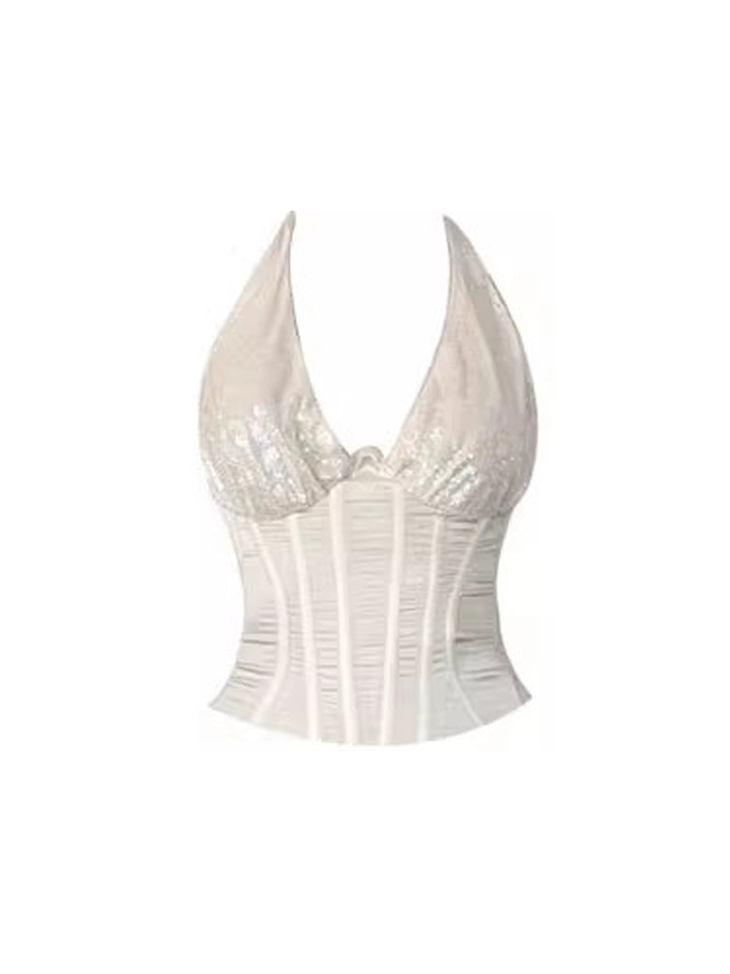 Sheen Bodycon 2-Piece Set Mini Skirt Hottie Outfit Sequins Floral Design Halter Short Dress AP4238