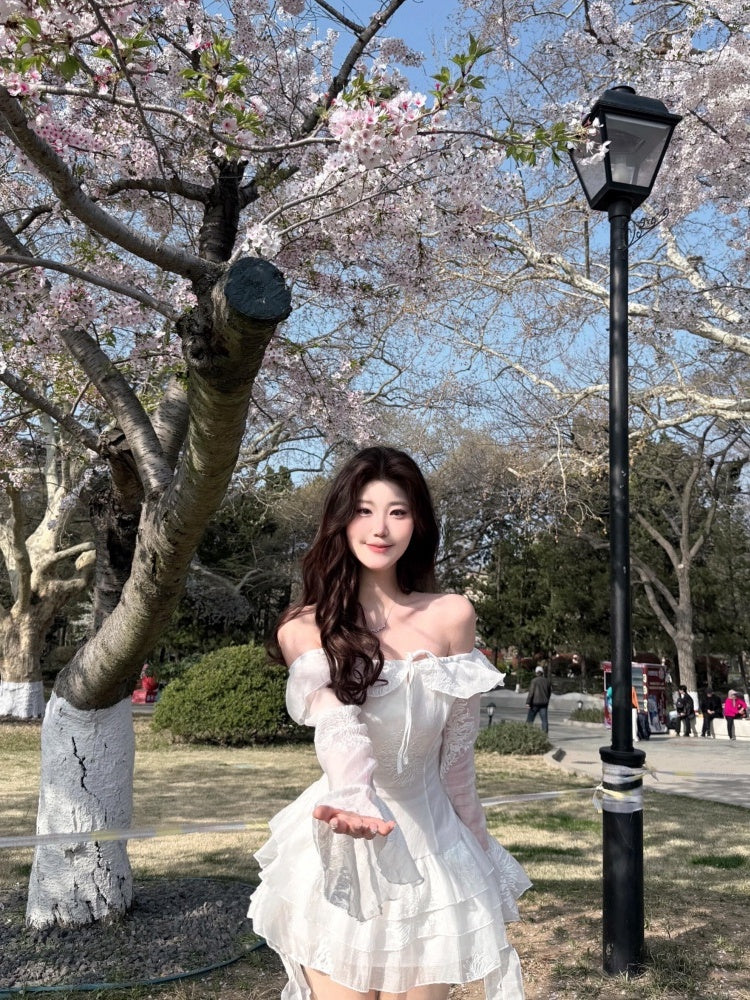 Enticing White Lace Splicing A-Line Ruffles Mini Skirt Glam Long Sleeve Off-Shoulder Tiered Short Dress AP4018