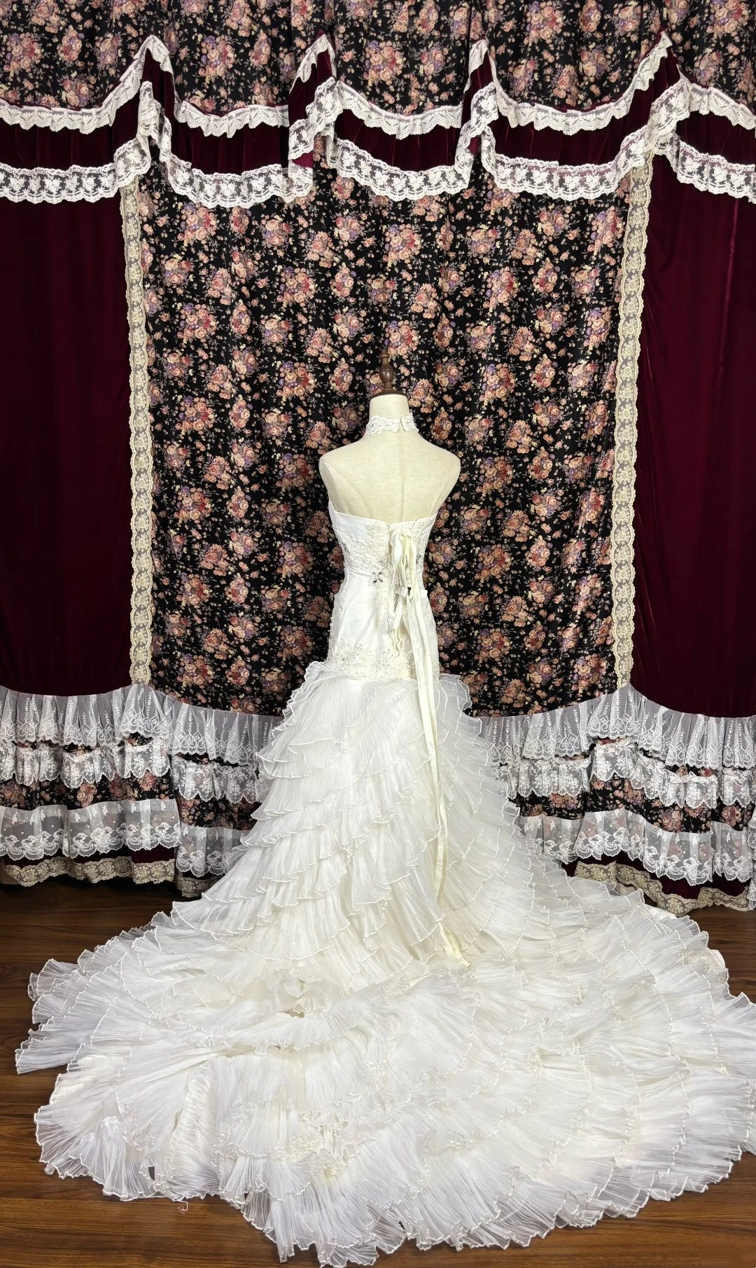 Trendy Mermaid Halter Neck Bridal Dress Rhinestones Sequins Appliques Ruffled Tiered Wedding Dress AP3072