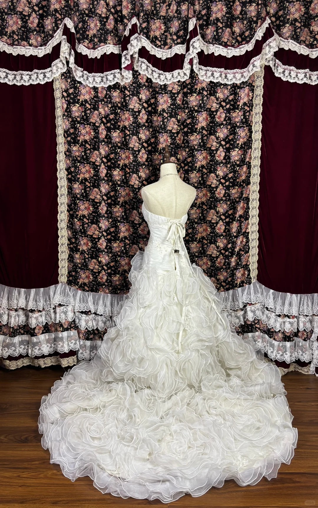 Glamorous A-Line Strapless Bridal Gowns Beaded Crystals Appliques Ruffled Wedding Dress AP2429