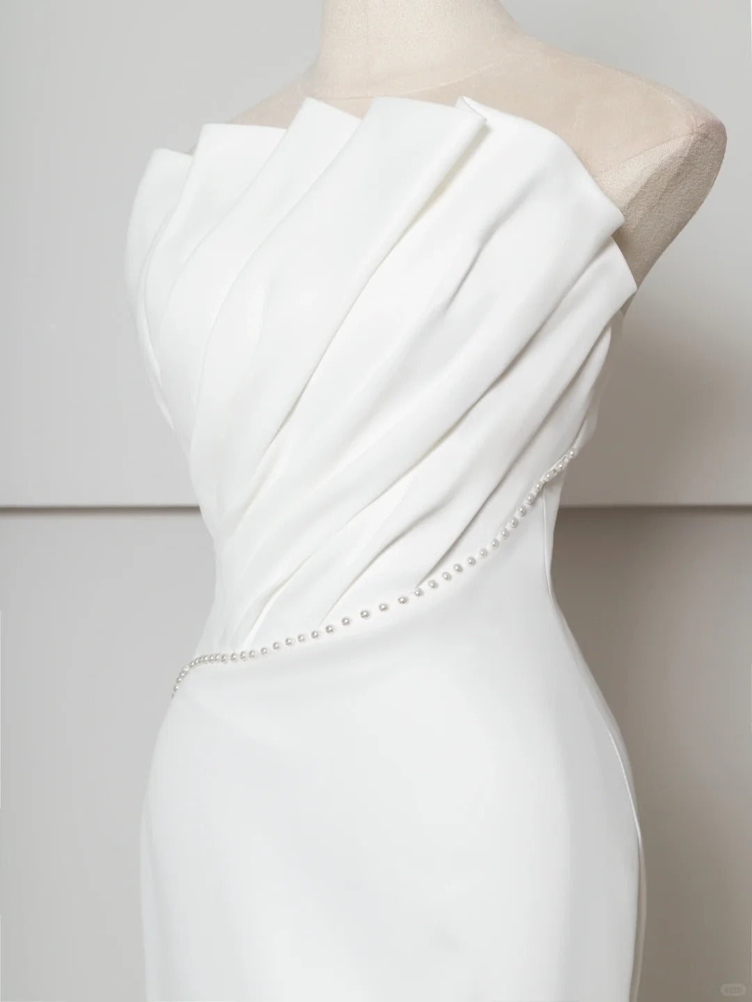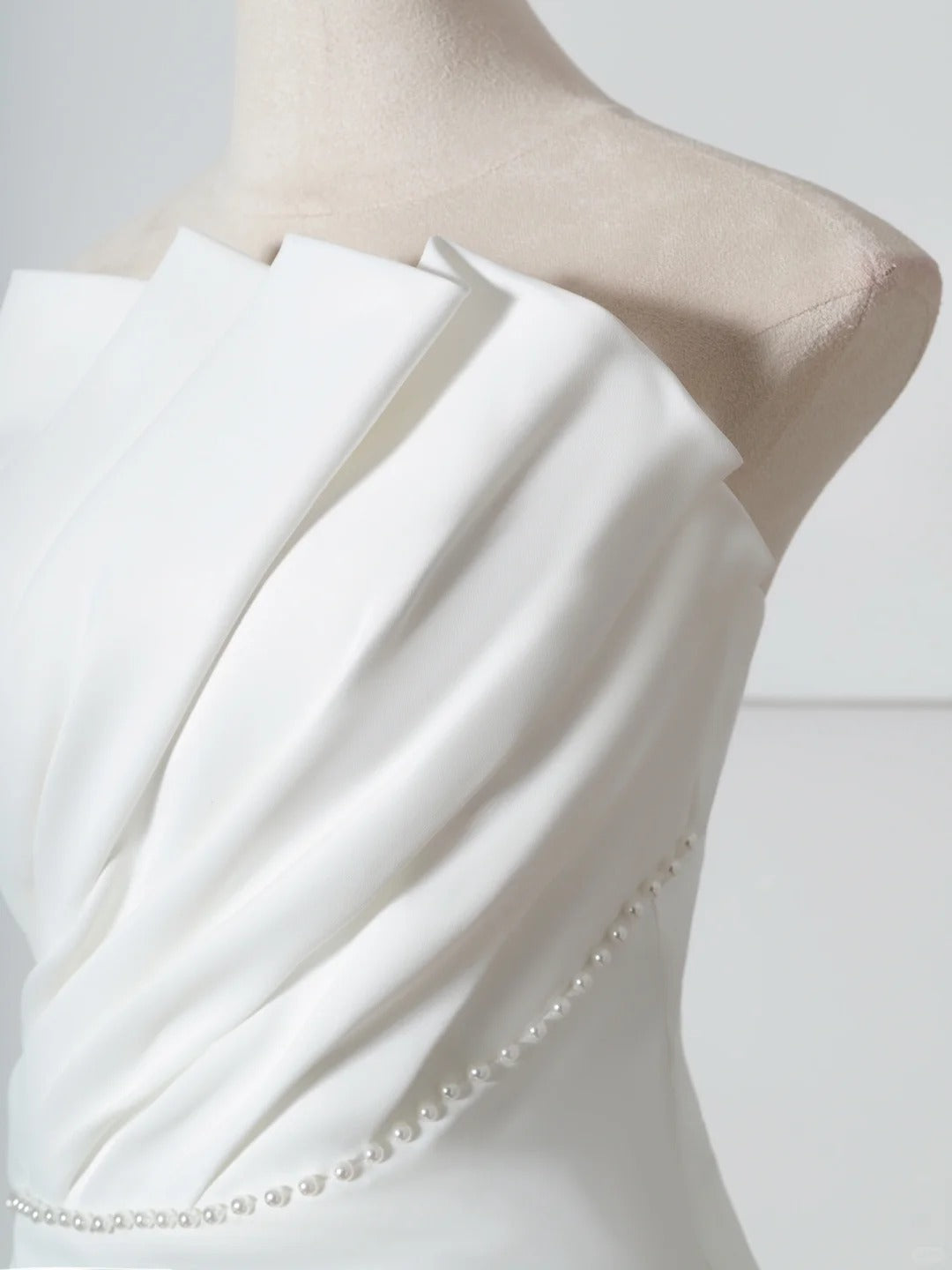 Graceful Strapless Mermaid Bridal Gowns Pressed Pleated Beading Satin Wedding Dress AP2377
