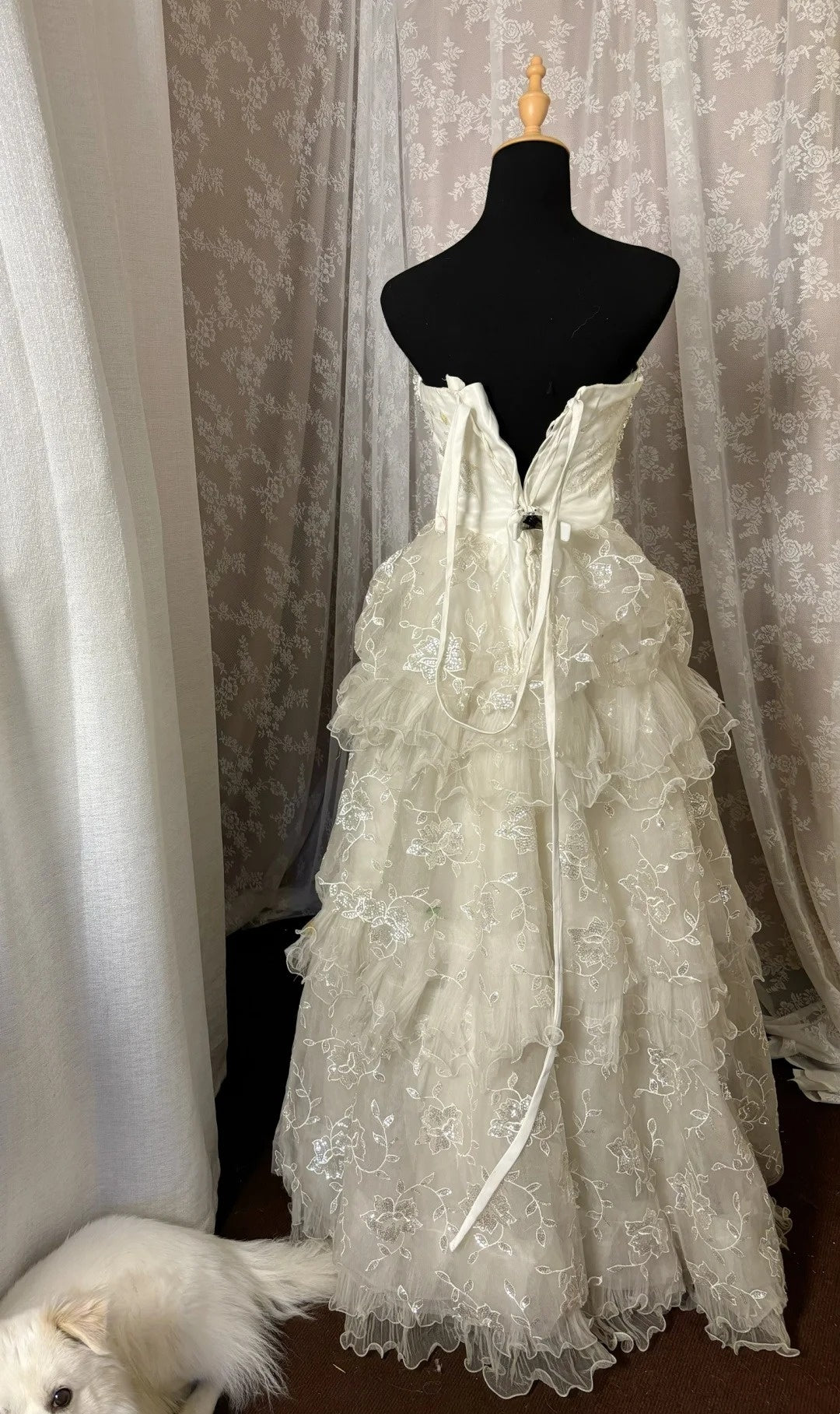 Fabulous A-Line Strapless Bridal Gowns Sequins Appliques Rhinestones Wedding Dress AP3032