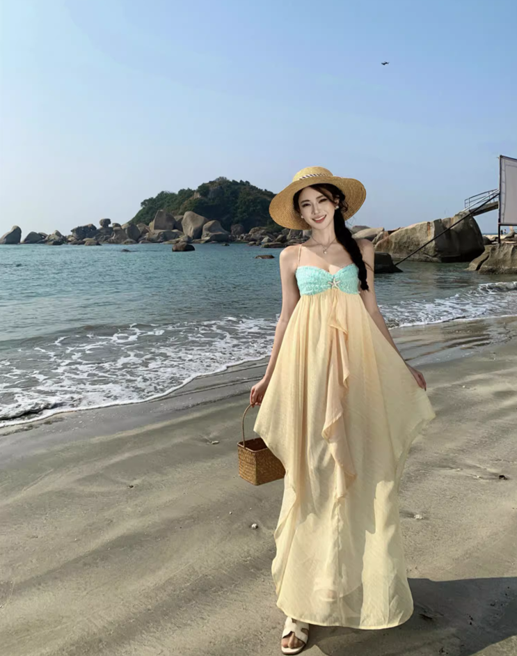 Elegant Glittering Sequins Design Flowy Maxi Dress Photogenic Asymmetric Hem Ruffles Long Dress AP1215