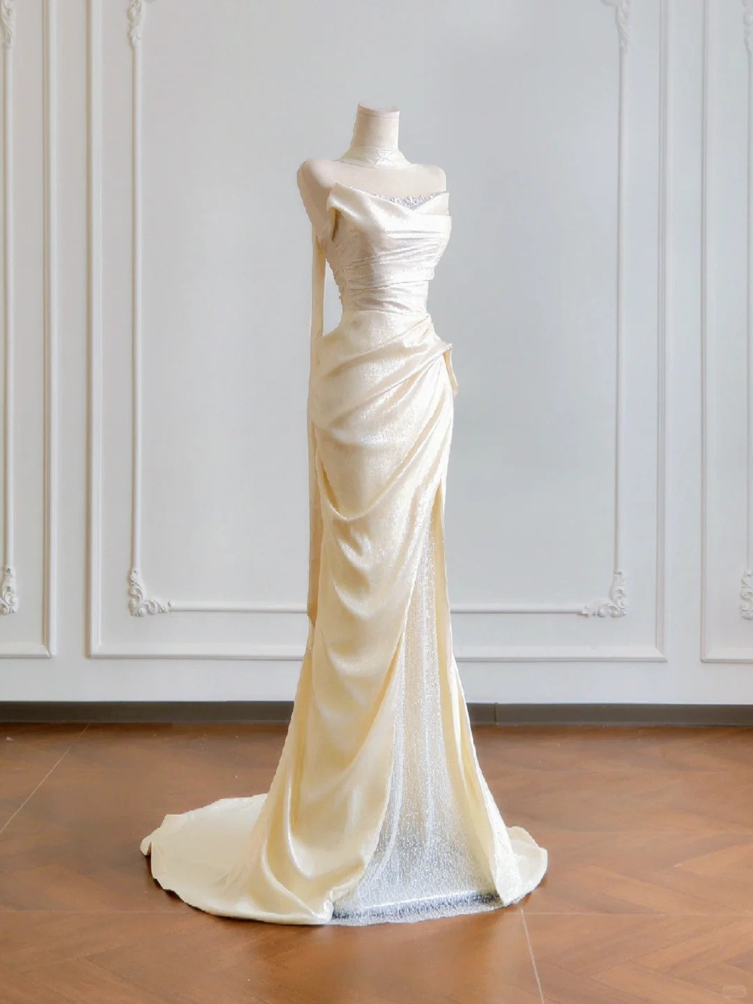 Elegant Shimmering Fabric Strapless Mermaid Maxi Dress Vogue Draped Bodice Glitter Tulle Side Slit Beading Prom Dress AP2215