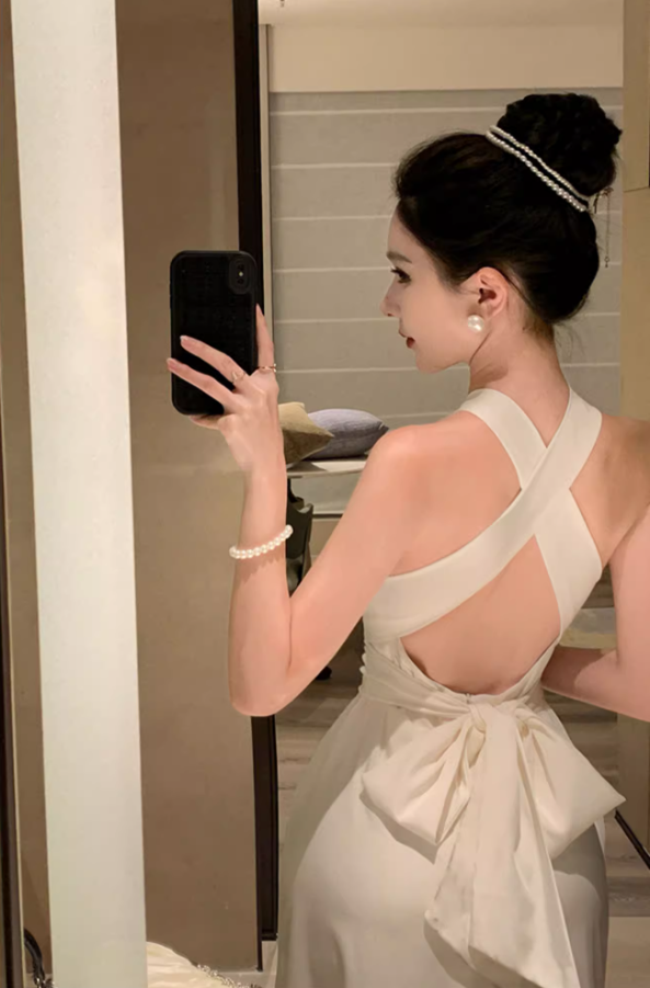 Graceful Coastal Vacays Hollow-Out High-Slit Maxi Dress Flowy Chic Crisscross Waist-Cinched Halter Long Dress AP1462