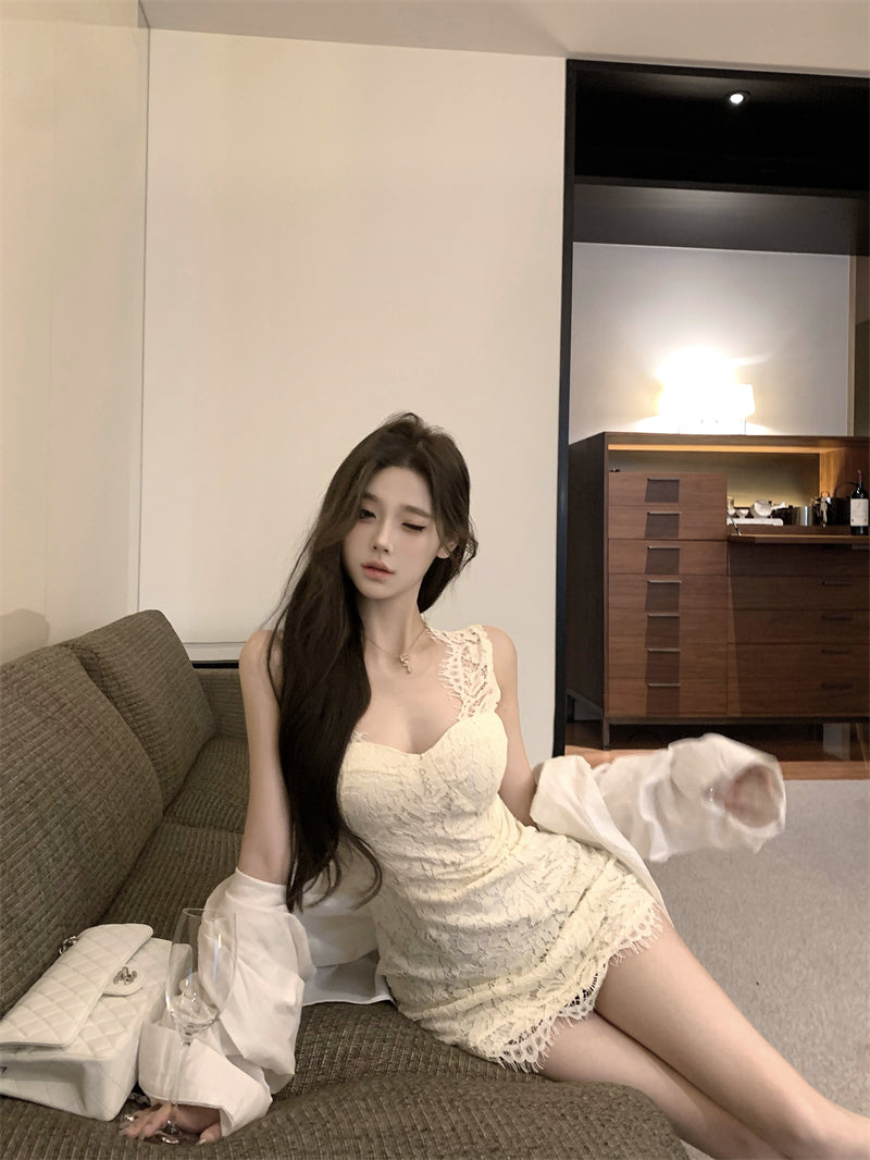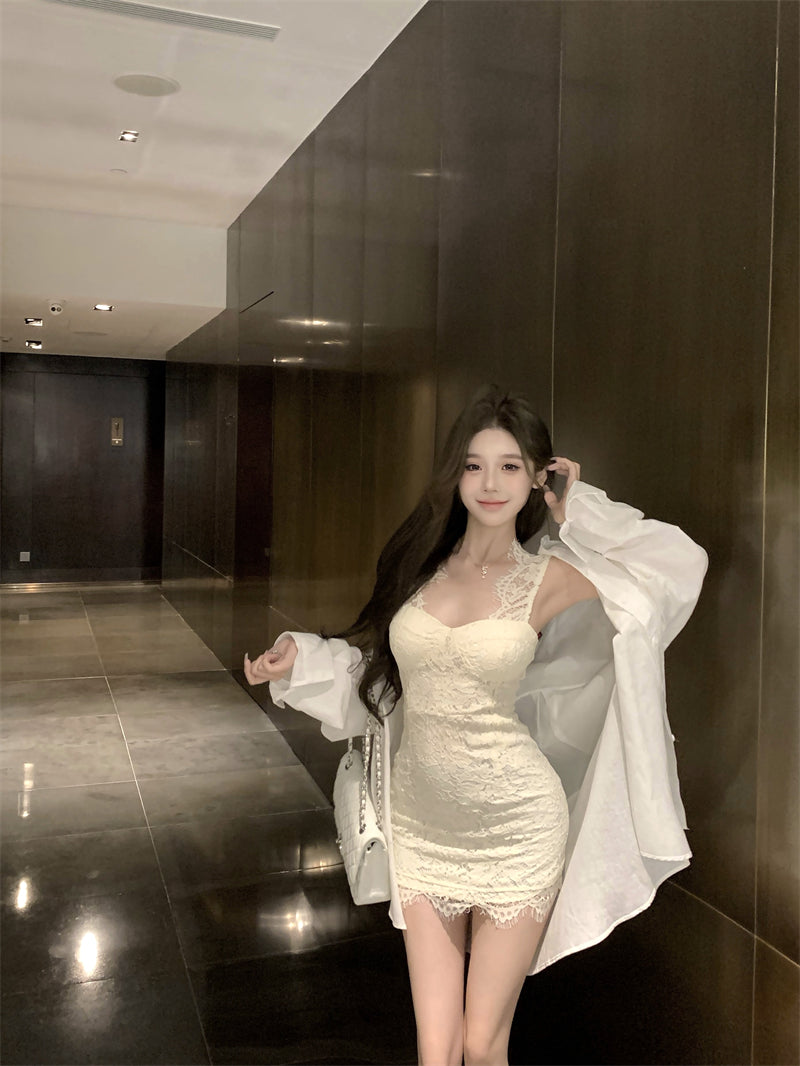 Glamorous White Lace Trimmed Strap Party Nights Mini Skirt Dreamy Sheath Sweetheart Neckline Short Dress AP1775