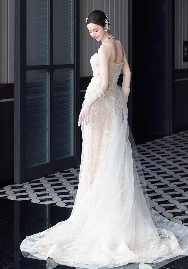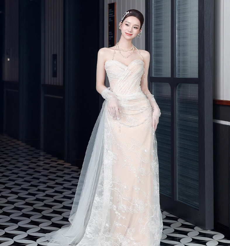 Fairy Tale Strapless Beading Cinched-Waist Halter Dress Textured Tulle Layered Prom Dress AP0753