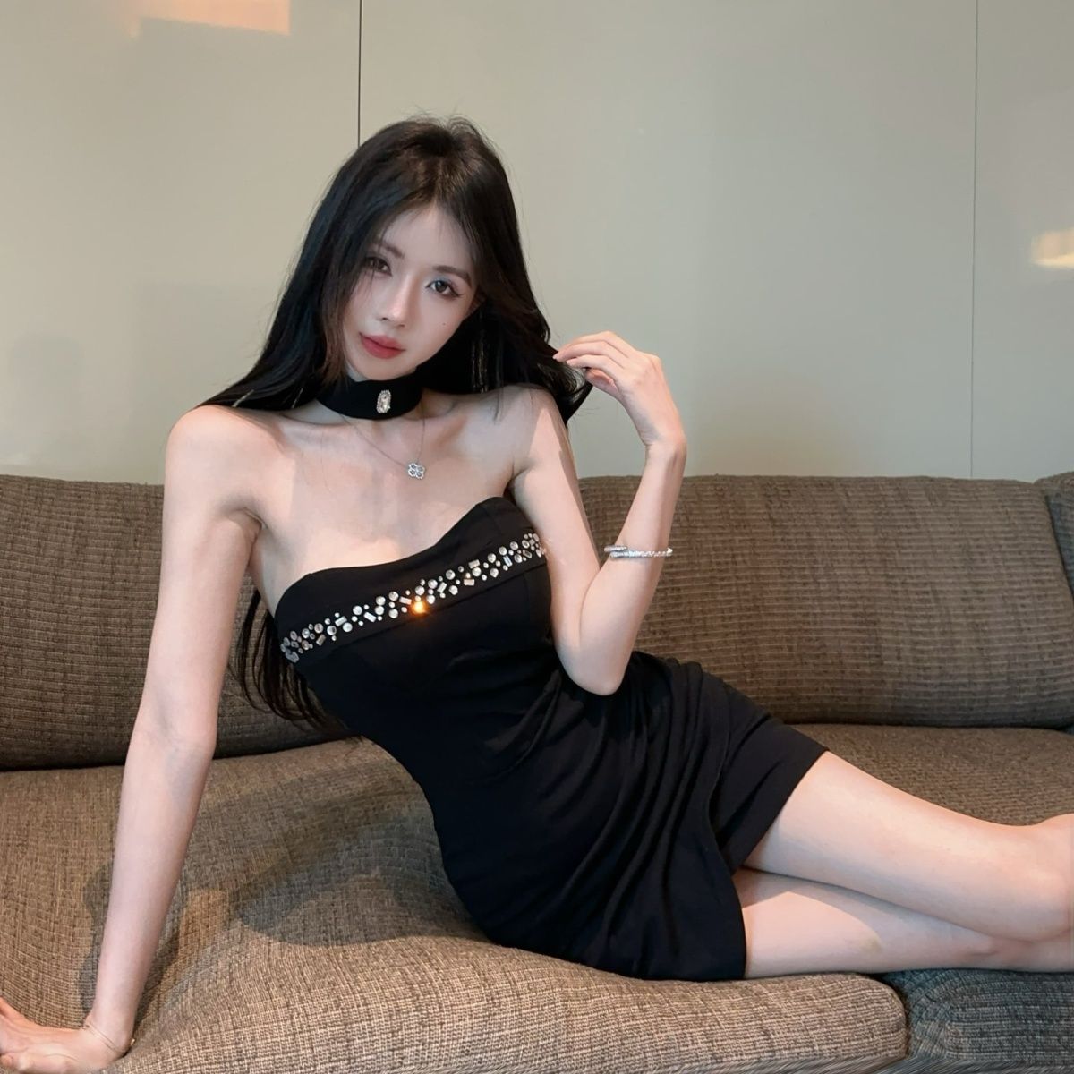 Charming Strapless Skirt Crystal Ornament Summer Elegant Sheath Short Dress AP0282