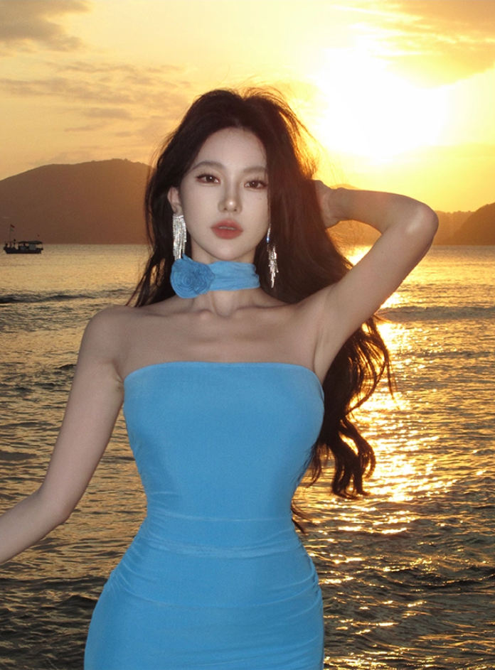 Fascinating Asymmetric Hem Ruffles Trim Mini Dress Y2K Style Bodycon Strapless Floral Design Short Dress AP3532
