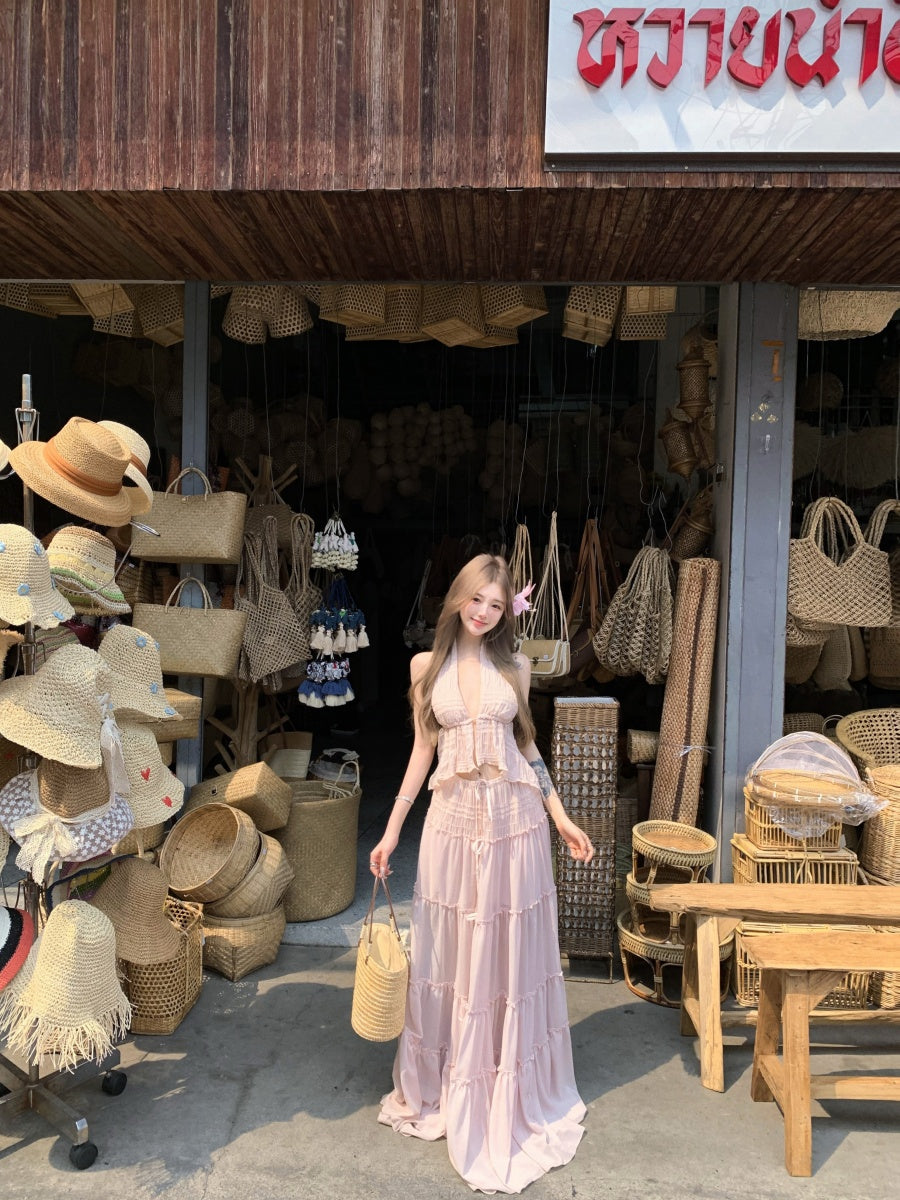 Trendy Deep V Neck 2-Piece Set Maxi Dress Sexy A-Line Flowy Tiered Hem Pink Long Dress AP3423