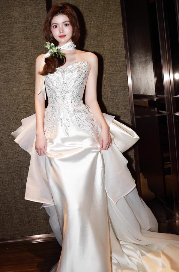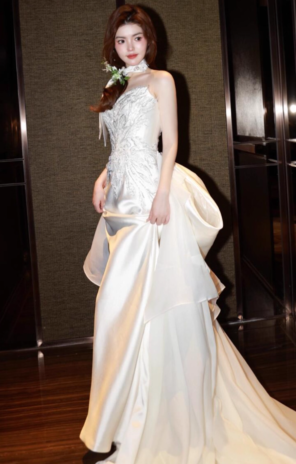 Timeless Applique Bodice Strapless Maxi Dress Asymmetric Hem Backless Bow-Knot Prom Dress AP0857