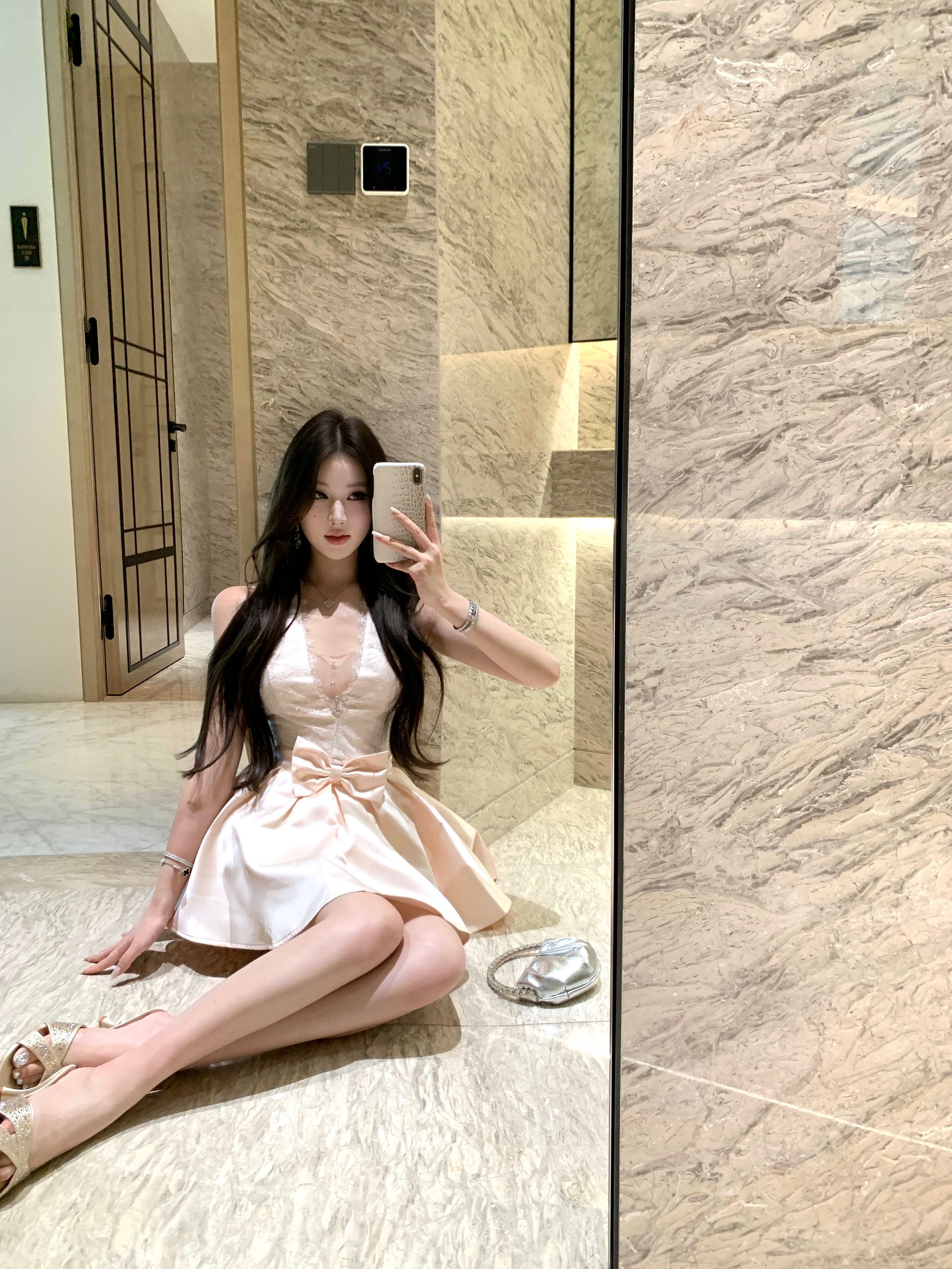 Cute White Lace Champagne Satin Mini Skirt Vogue Bow Accent Flared Hem Evening Dates Short Dress AP2014