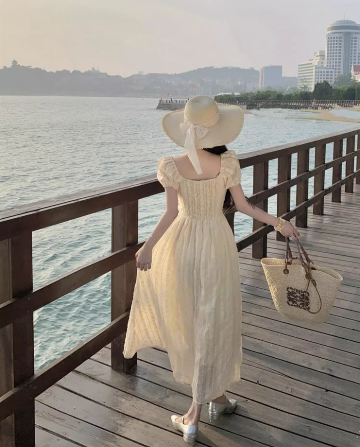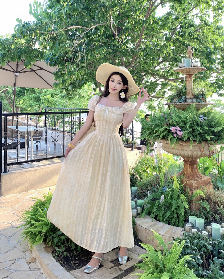 Ethereal Sheer Tulle Layered Lace Trimmed Maxi Dress Charming Summer Outfit Puffy Short Sleeve Long Dress AP1332
