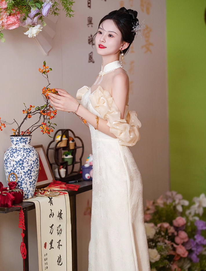 Socialite Style Tulle Splicing Off-Shoulder Evening Feast Strapless Bridesmaid Hugging Prom Dress AP0645