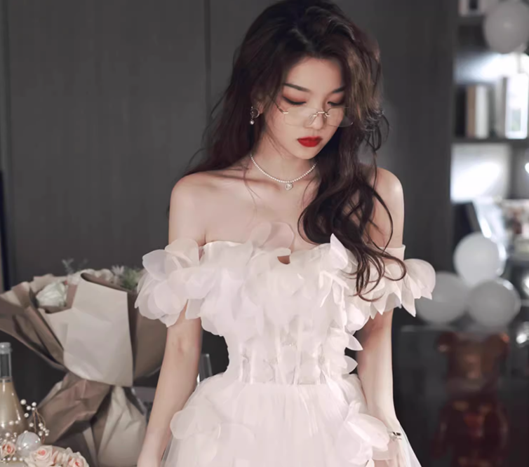 Gorgeous Off-Shoulder 3D Petal Details Evening Dress Strapless Ruffles Layered Hem Prom Dress AP0738