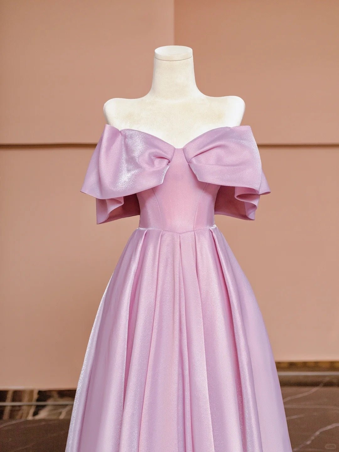 Stunning Ruffled Off-Shoulder A-Line Evening Gowns Pink Floor Length Long Prom Dress AP2343