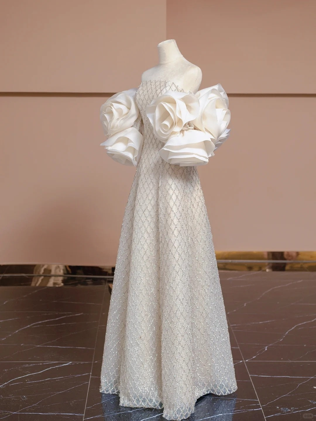 Vintage Strapless A-Line Evening Gowns Floral Shawl Beading Prom Dress AP2313