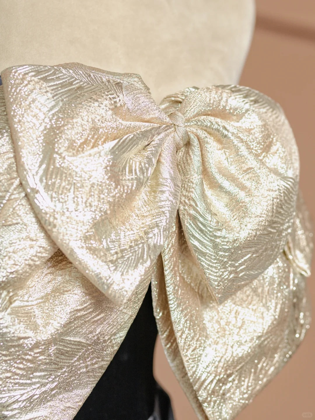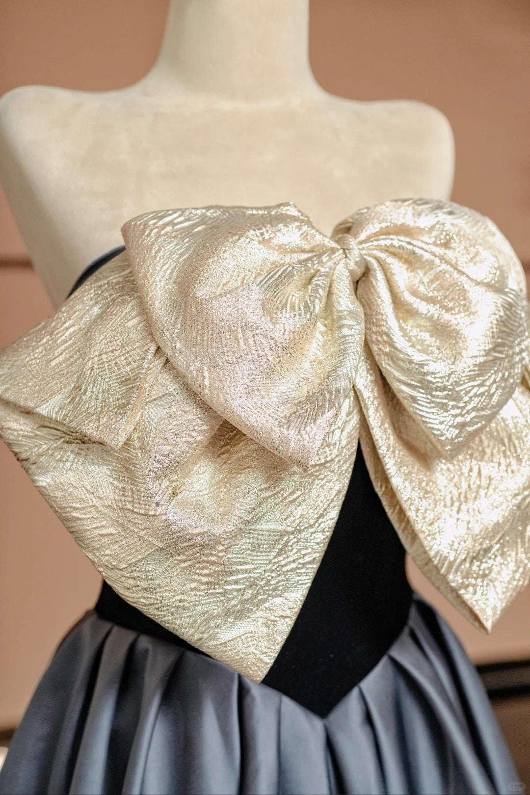 Graceful A-Line Strapless Evening Gowns Bow Satin Pleated Long Prom Dress AP2325
