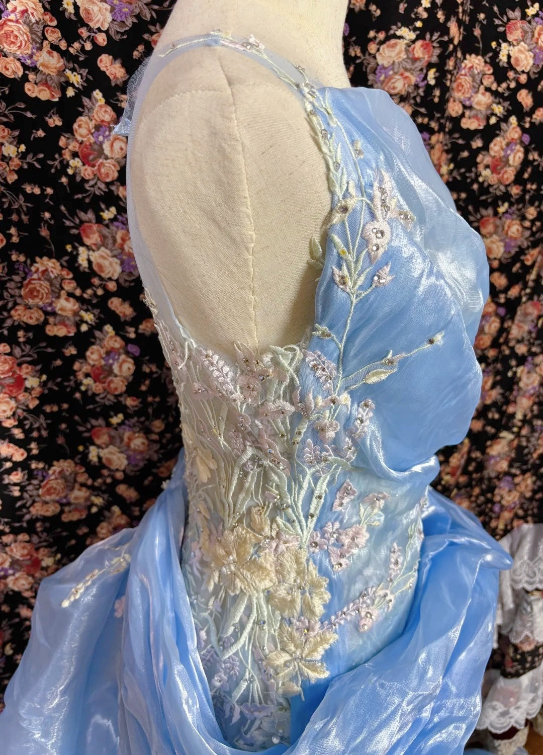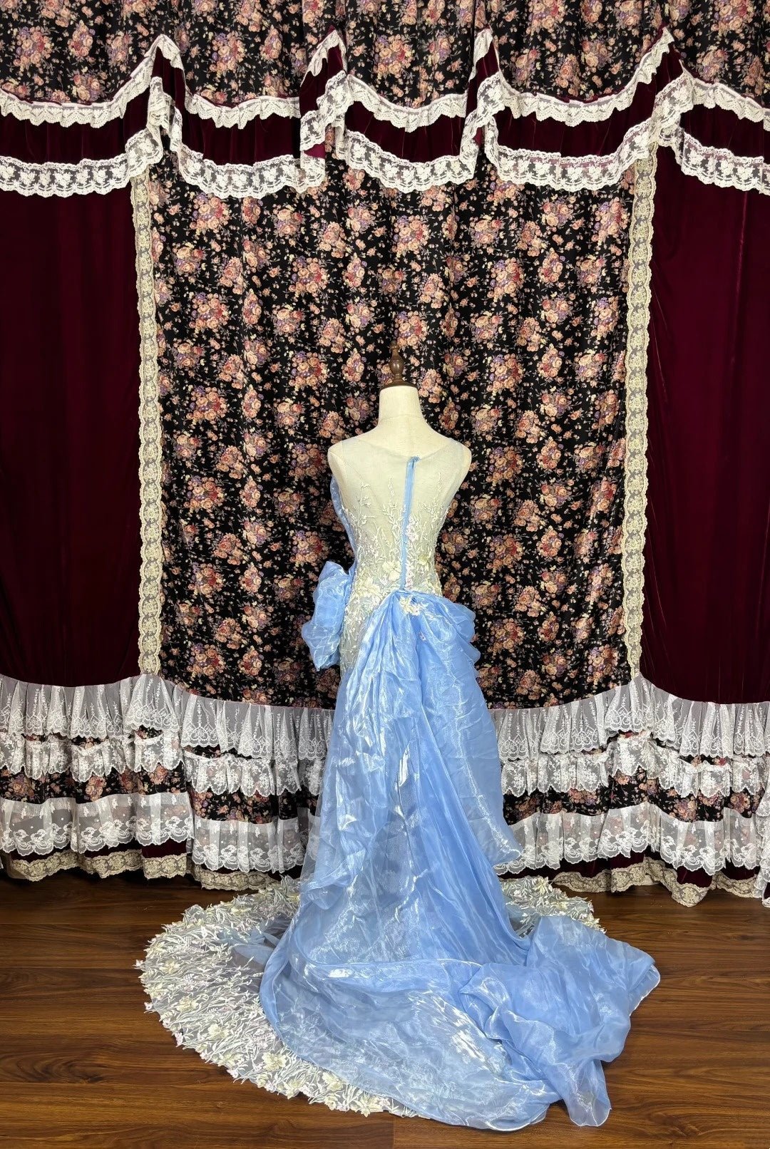 Delicate Illusion Neck Mermaid Evening Gowns Sequins Appliques Tulle Prom Dress AP3080
