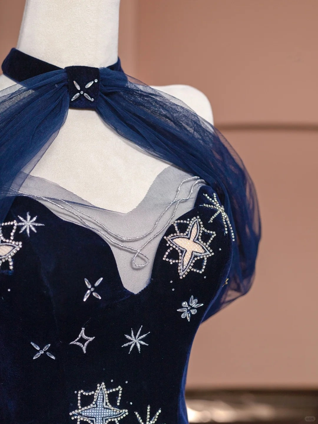 Fabulous A-Line Mesh Off-Shoulder Evening Gowns Beading Sequins Velvet Long Prom Dress AP2329