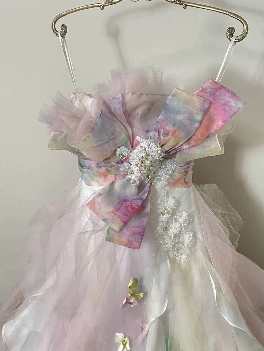 Charming A-Line Strapless Long Evening Gowns Applique Beading Crystals Prom Dress AP2417